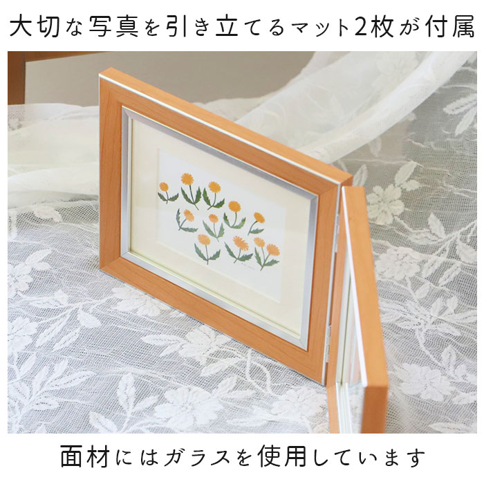 フォトフレーム おしゃれ 2面 通販 ワイン キャメル エメラルド ブルー ライトブラウン ダークブラウン