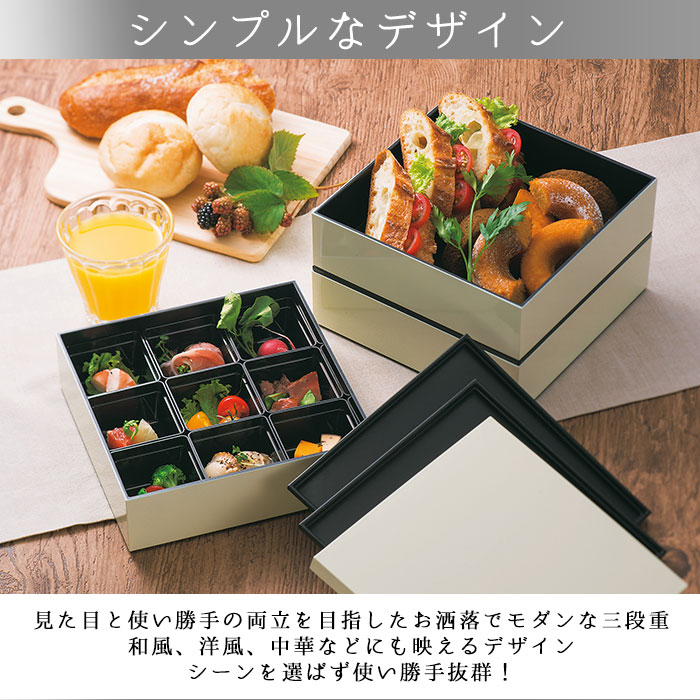 重箱 仕切り 通販 シンプル 3段 お キッチン用品 食器 調理器具 超目玉商品 アイボリー パプリカレッド ネイビー