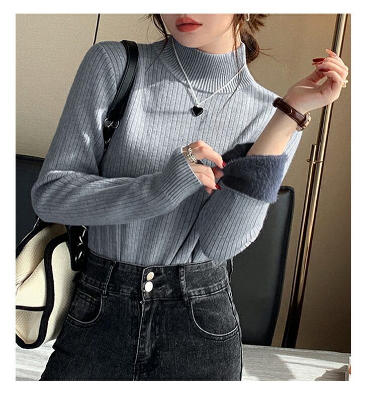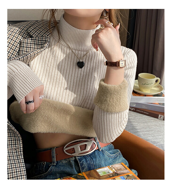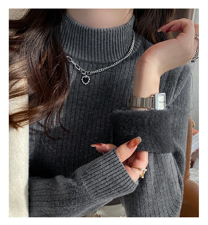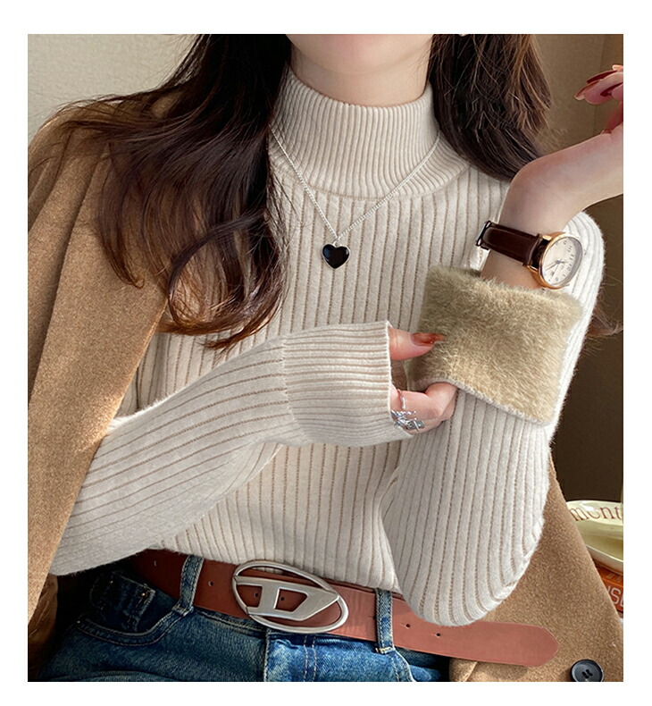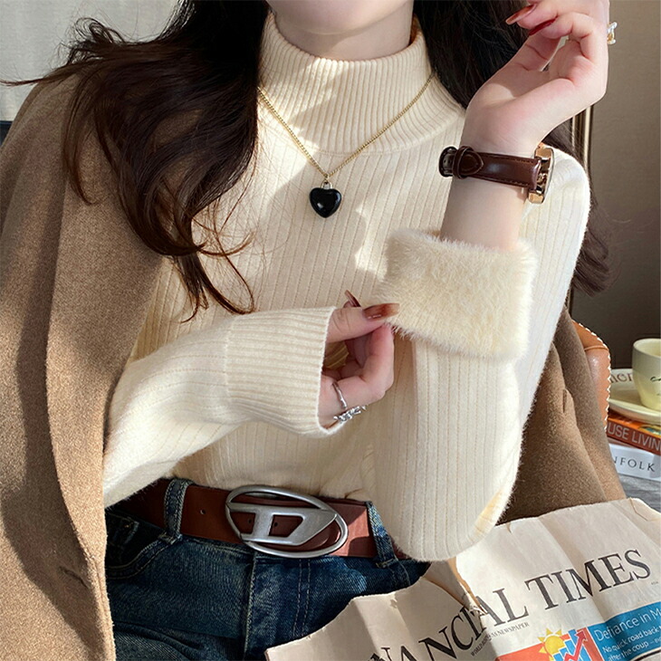 裏起毛ハイネックリブニットトップス レ レディースファッション 早い者勝ち ベージュ ホワイト ダークグレー ブラック オートミール ライトグレー