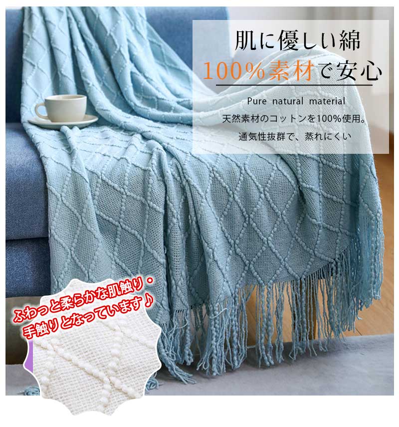 フリンジ付きブランケット 北欧 大判 おしゃれ ベッドスロー ニットブランケット 夏用 毛布 マルチクロス スローケット マルチカバー タオルケット ひざ掛け ふわふわ ベビー 膝掛け 掛け 柔らかい