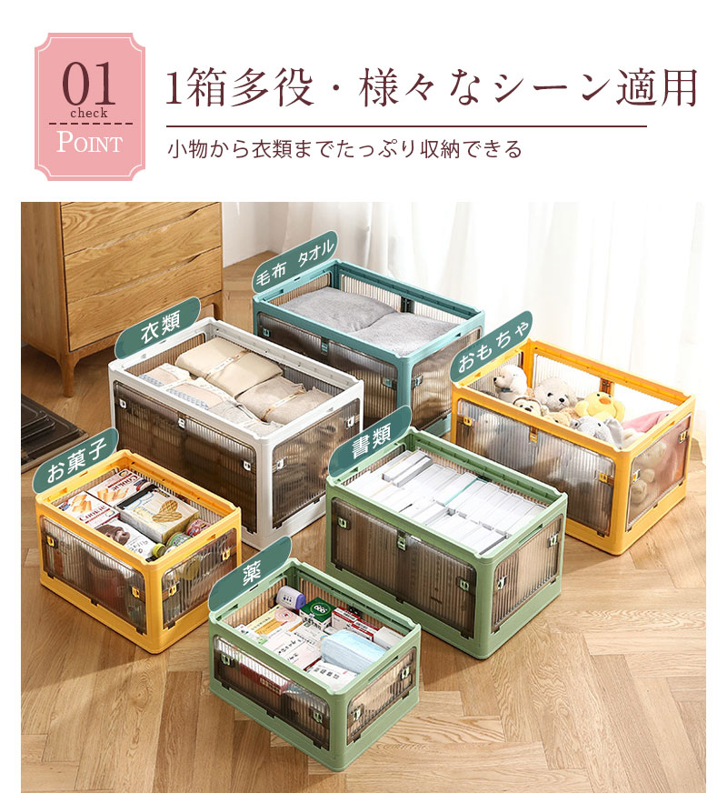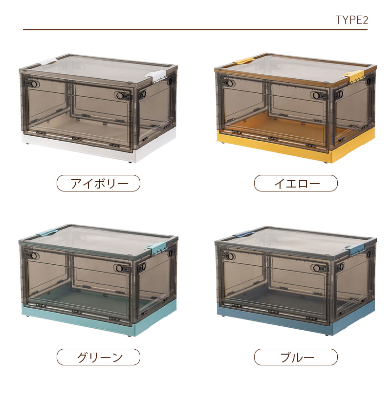 収納ボックス 折りたたみコンテナボック Type1 Type2 ホワイト グリーン イエロー ブルー クリームホワイト アイボリー