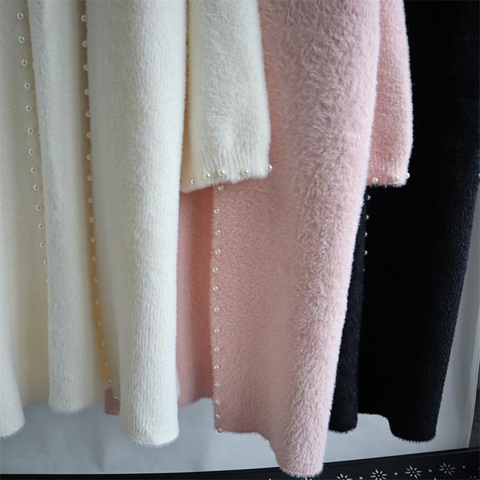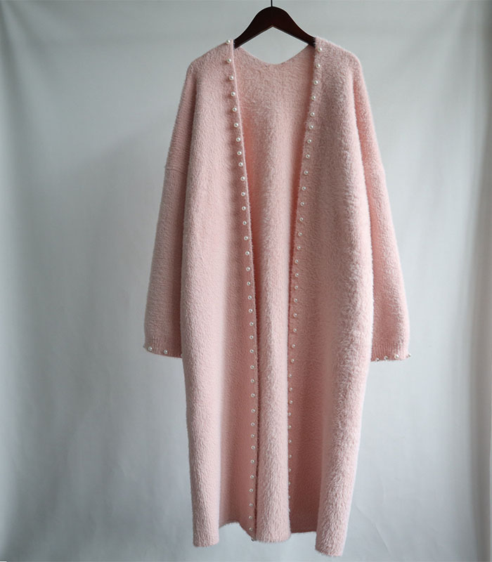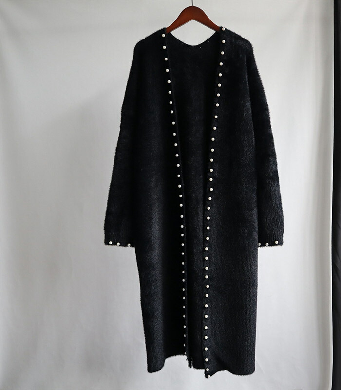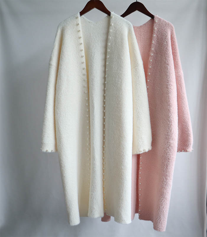 ロングカーディガン シャギー ニット トップス カーディガン ボレロ 新作 ホワイト ピンク ブラック