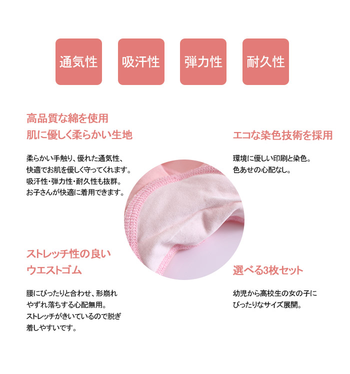 通気性、吸水性が高く肌触りのよい綿100%、耐久性が高く丈夫です。