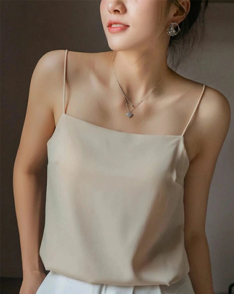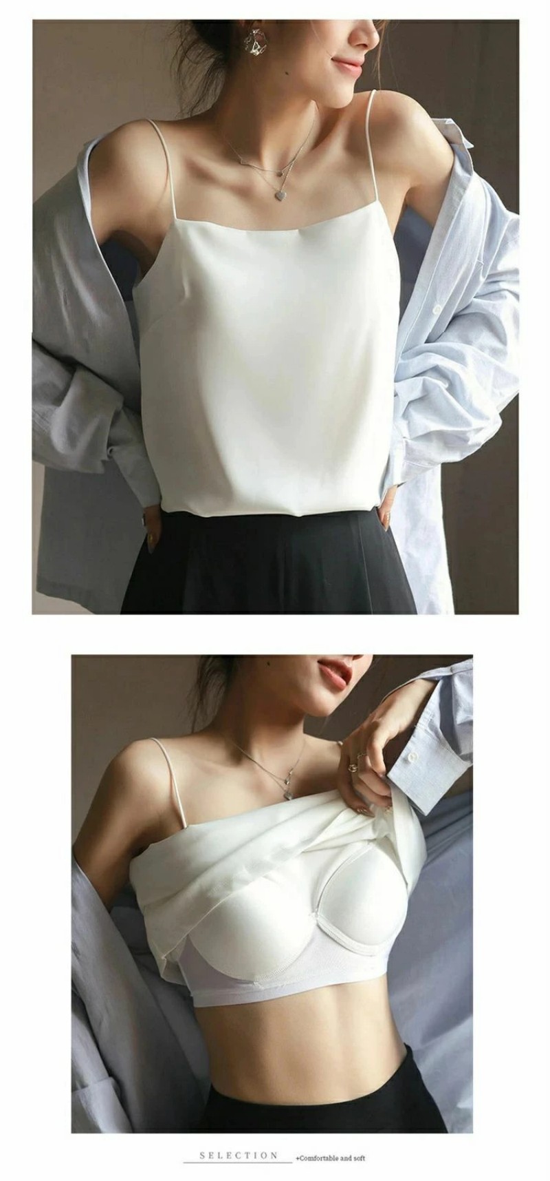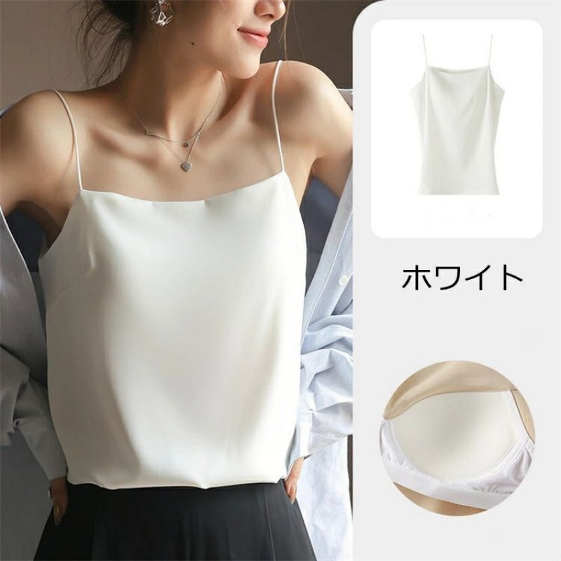 キャミソール カップ付き サテン 下着 インナー 下着 ナイトウエア 豊富 ブラック ホワイト あんずいろ S M L XL 2XL