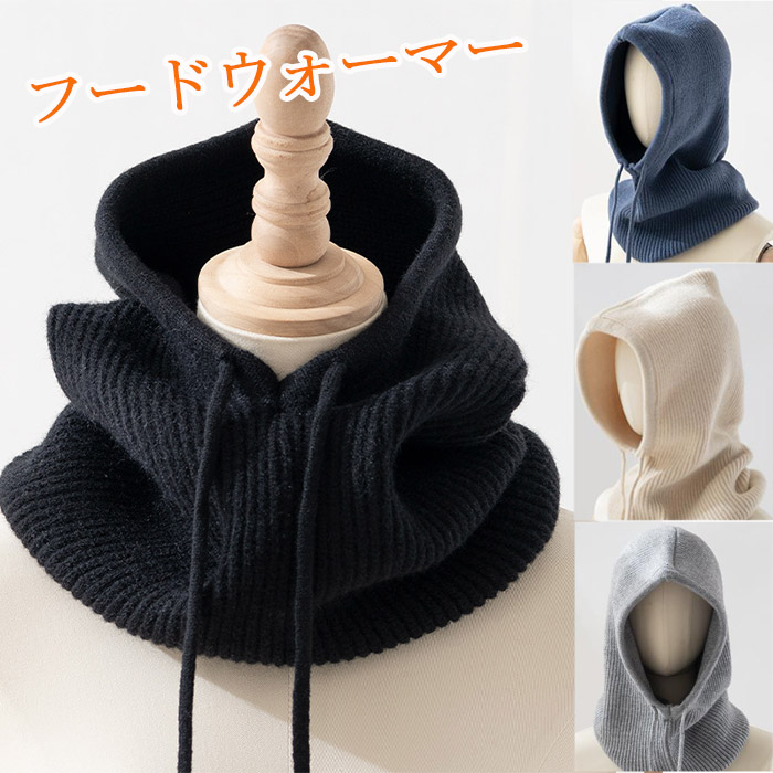 フードウォーマー ニット ネックウォー マフラー スカーフ ネックウォーマー スヌード 新登場! ブラック グレー ベージュ ブルー
