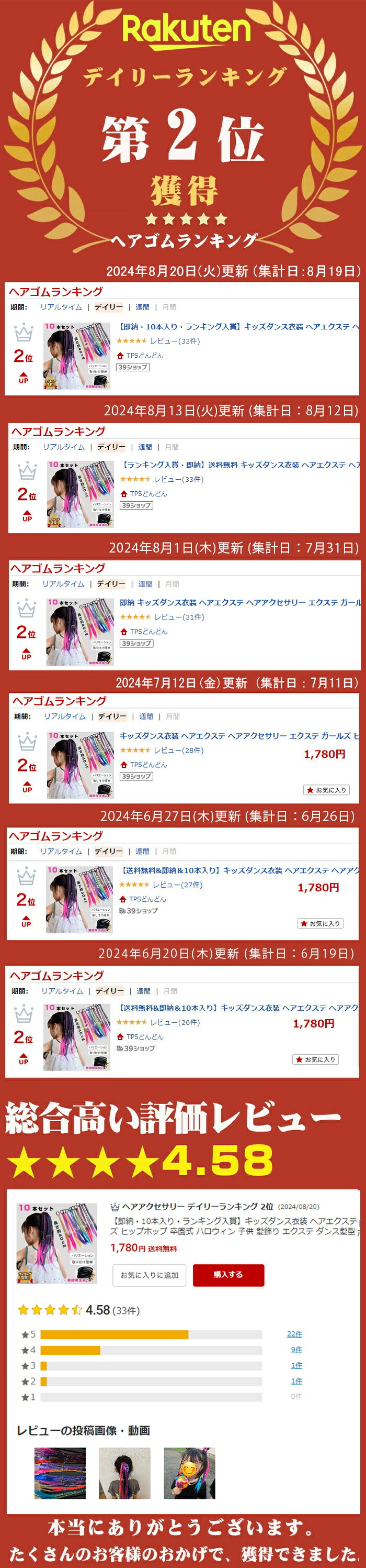 キッズダンス衣装 ヘアエクステ 10本 キッズ アクセサリー ヘアゴム 豊富