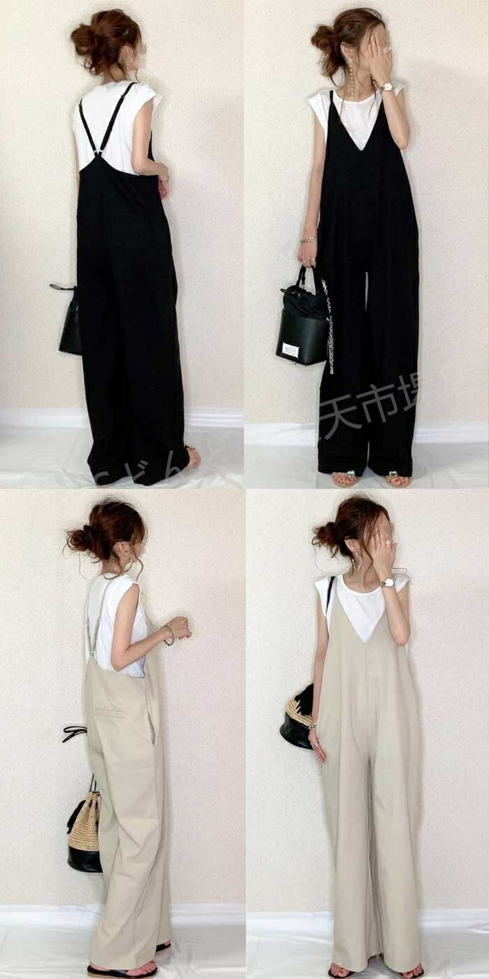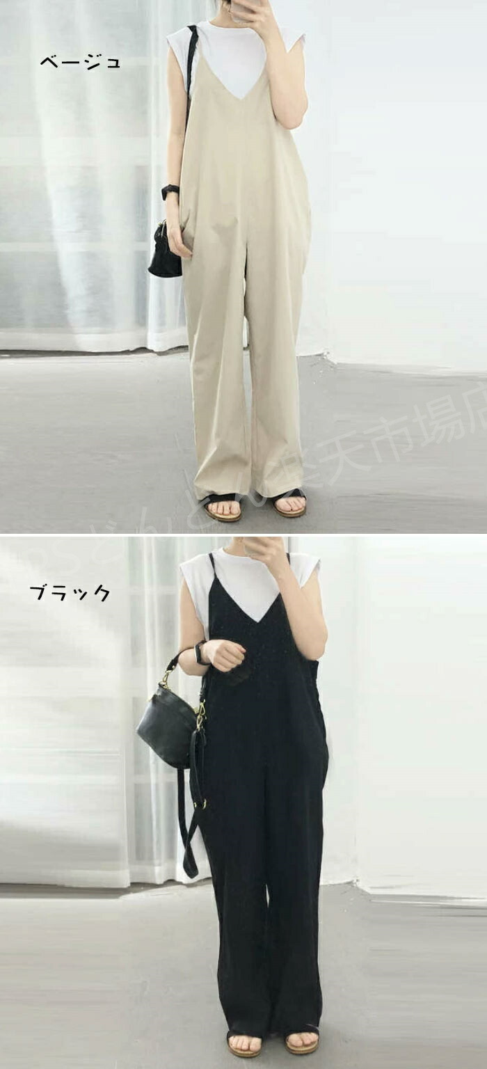 サロペット パンツ 低身長 オールイン レディースファッション 続々入荷中 ブラック ベージュ グリーン ブルー コーヒー