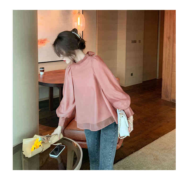 ブラウス レディース 長袖 パフスリー レディースファッション 続々登場 ホワイト ピンク S M L XL