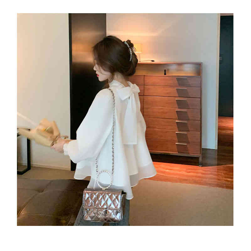 シアースリーブ ドッキングシャツ ボウタイシャツブラウス