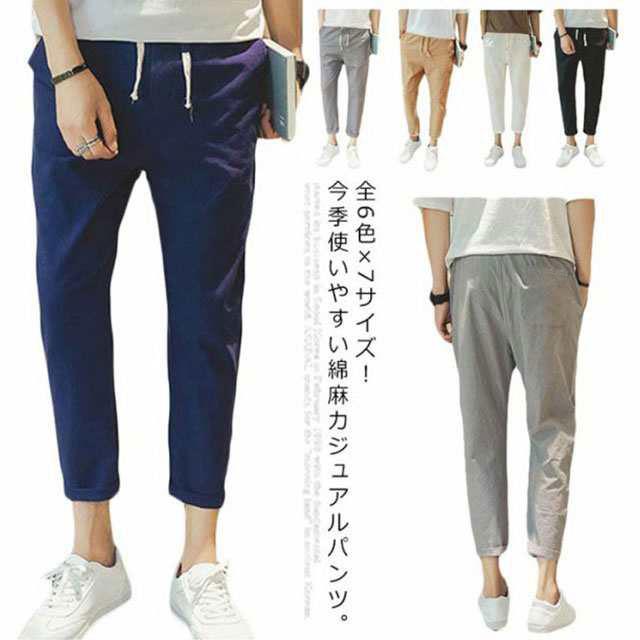 全6色×7サイズ 春夏 綿麻パンツ メ ズボン パンツ 早い者勝ち ベージュ ホワイト ブラック ライトグレー ダークグレー 紺 M L XL 2XL 3XL 4XL 5XL