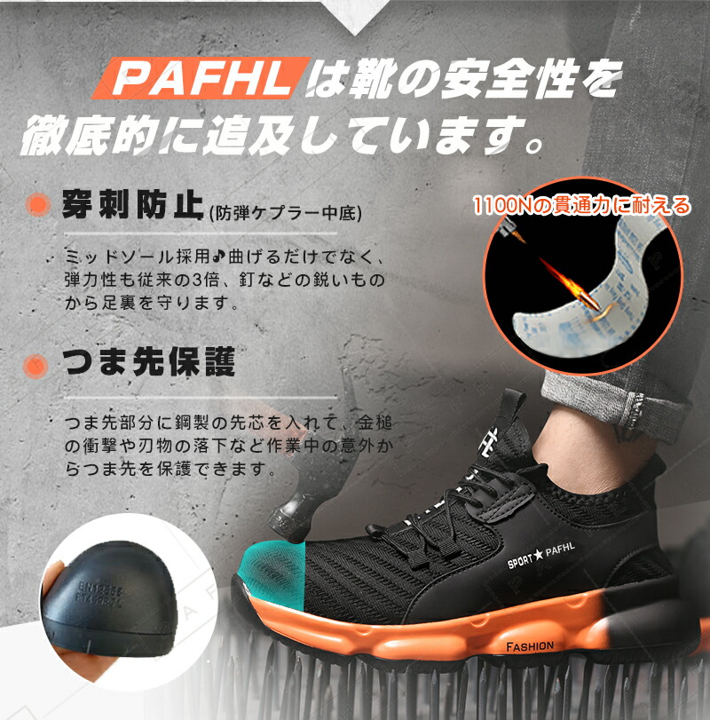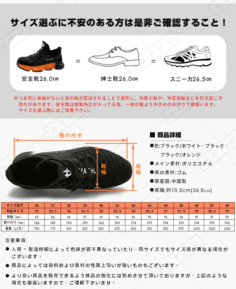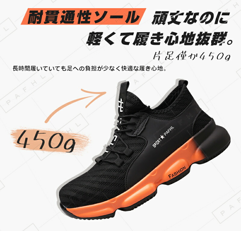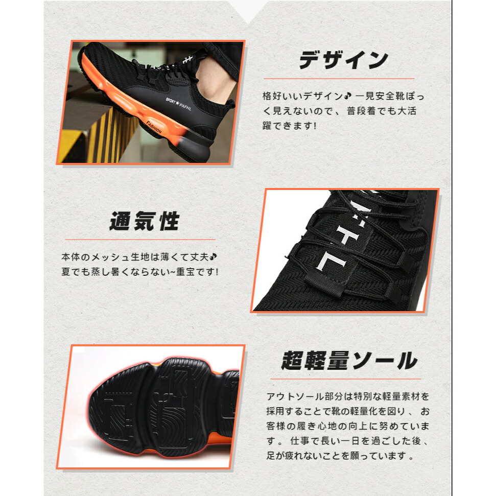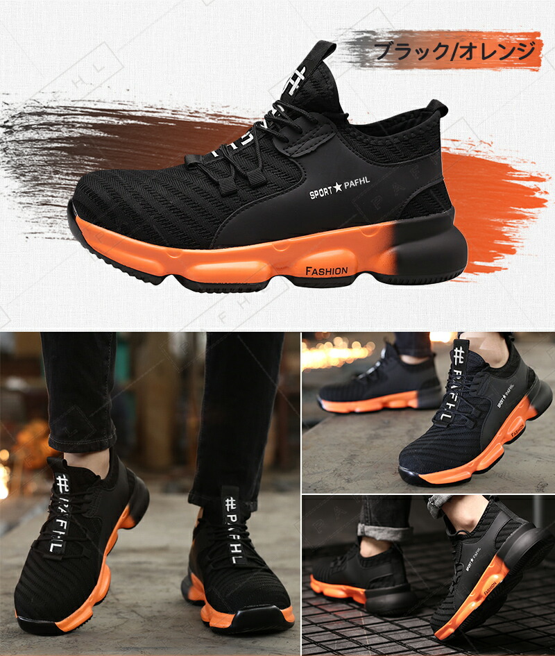 安全靴 作業靴 セーフティーシューズ オレンジ ホワイト 23.0 23.5 24.0 24.5 25.0 25.5 26.0 26.5 27.0 27.5 28.0 28.5 29.0