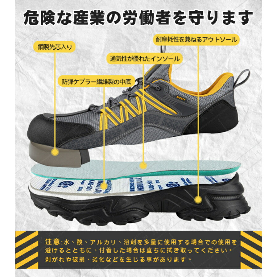 安全靴 作業靴 セーフティーシューズ ブラック グレー 23.0 23.5 24.0 24.5 25.0 25.5 26.0 26.5 27.0 27.5 28.0 28.5 29.0