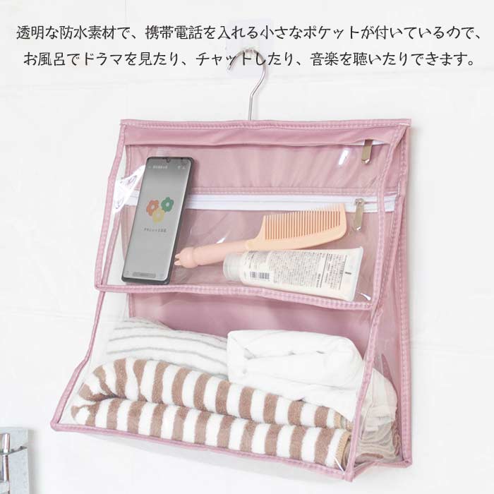 浴室防水バッグ 壁掛け袋 防水収納袋 ピンク ブルー ダークグレー