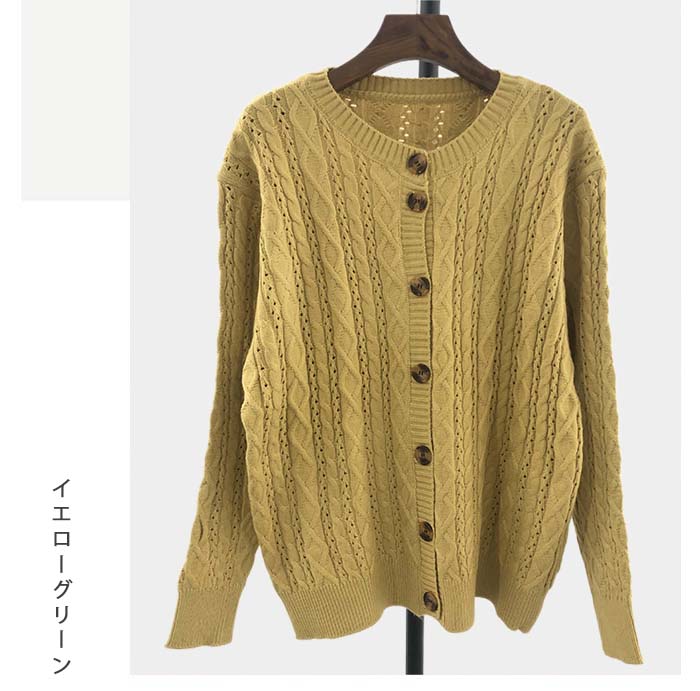 ケーブル編み ニットカーディガン レデ トップス カーディガン ボレロ 新作 オフホワイト ブルー キャラメル イエローグリーン
