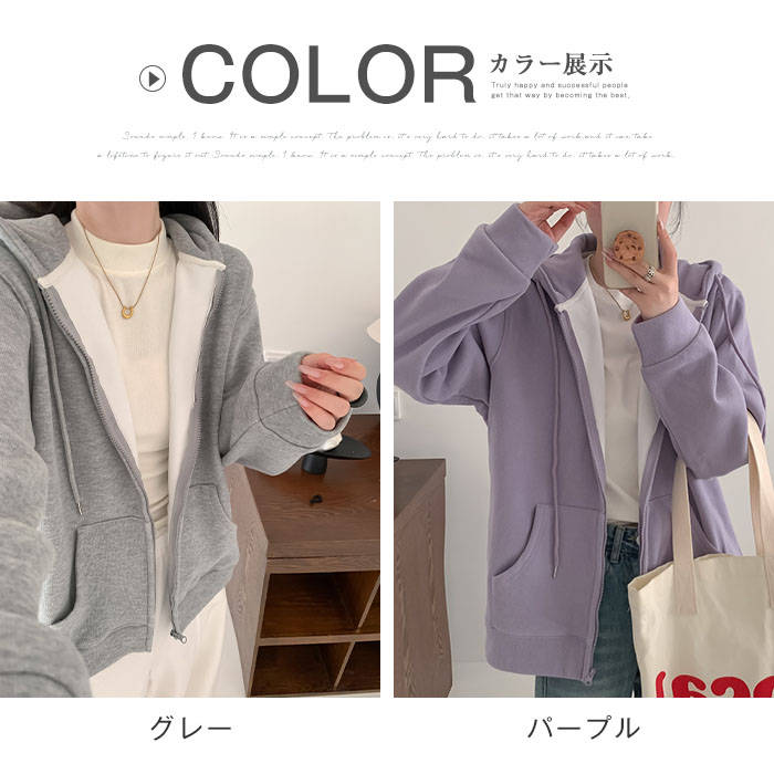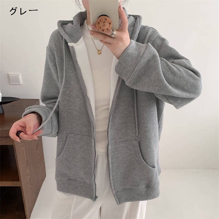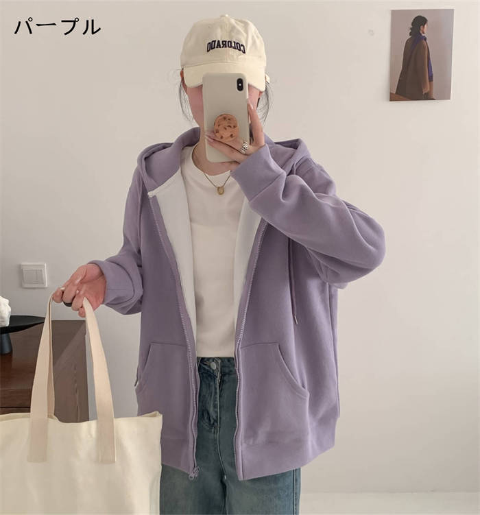 ジップパーカー 裏ボア 綿 厚手 フー レディースファッション 特集 グレー パープル M L