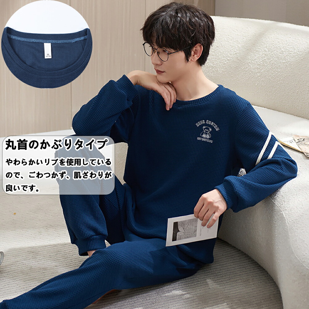 パジャマ メンズ 薄手 長袖 綿 秋用 上下セット 部屋着 寝巻き ルームウェア 丸首 男性用 父の日 パジャマメンズ綿 入院用 家着 おしゃれ 肌に優しい 紳士パジャマ メンズパジャマ 学生 無地