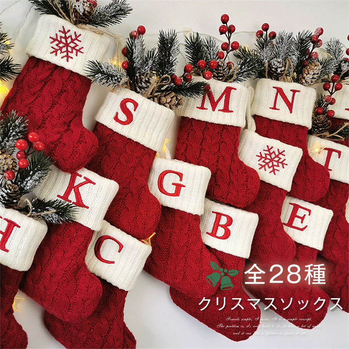 クリスマス ソックス 靴下 クリスマス A B C D E F G H I J K L M N O P Q R S T U V W X Y Z SNOW柄 無地