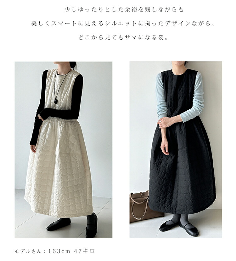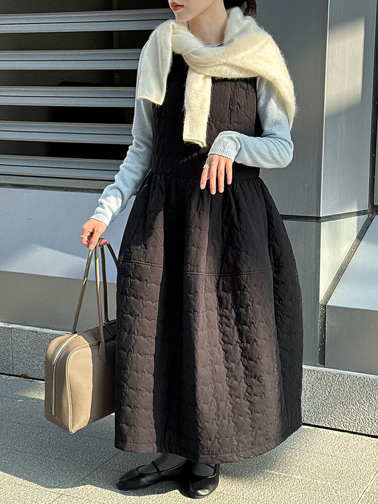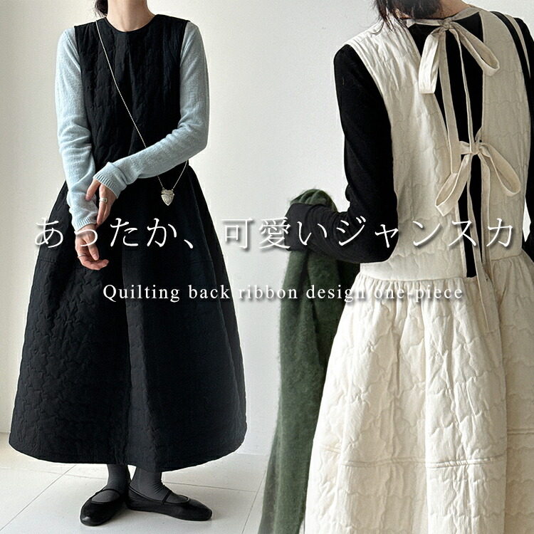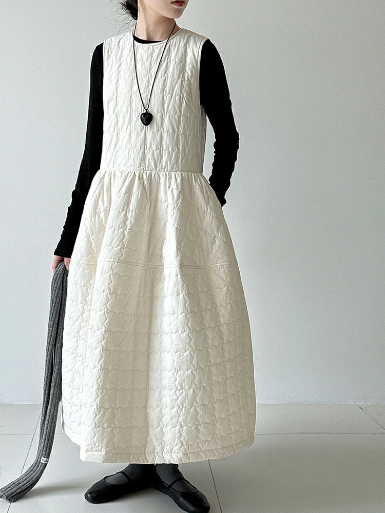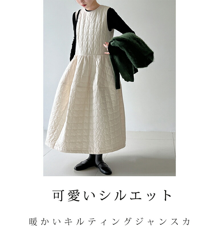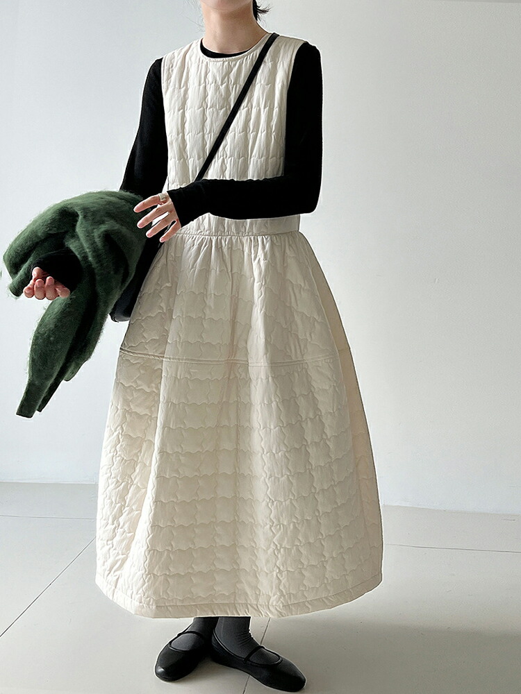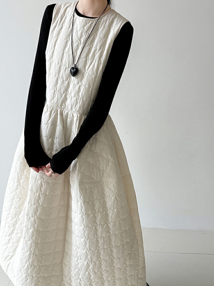 キルティング ワンピース 秋冬 暖かい ワンピース 超目玉商品 アイボリー ブラック M L