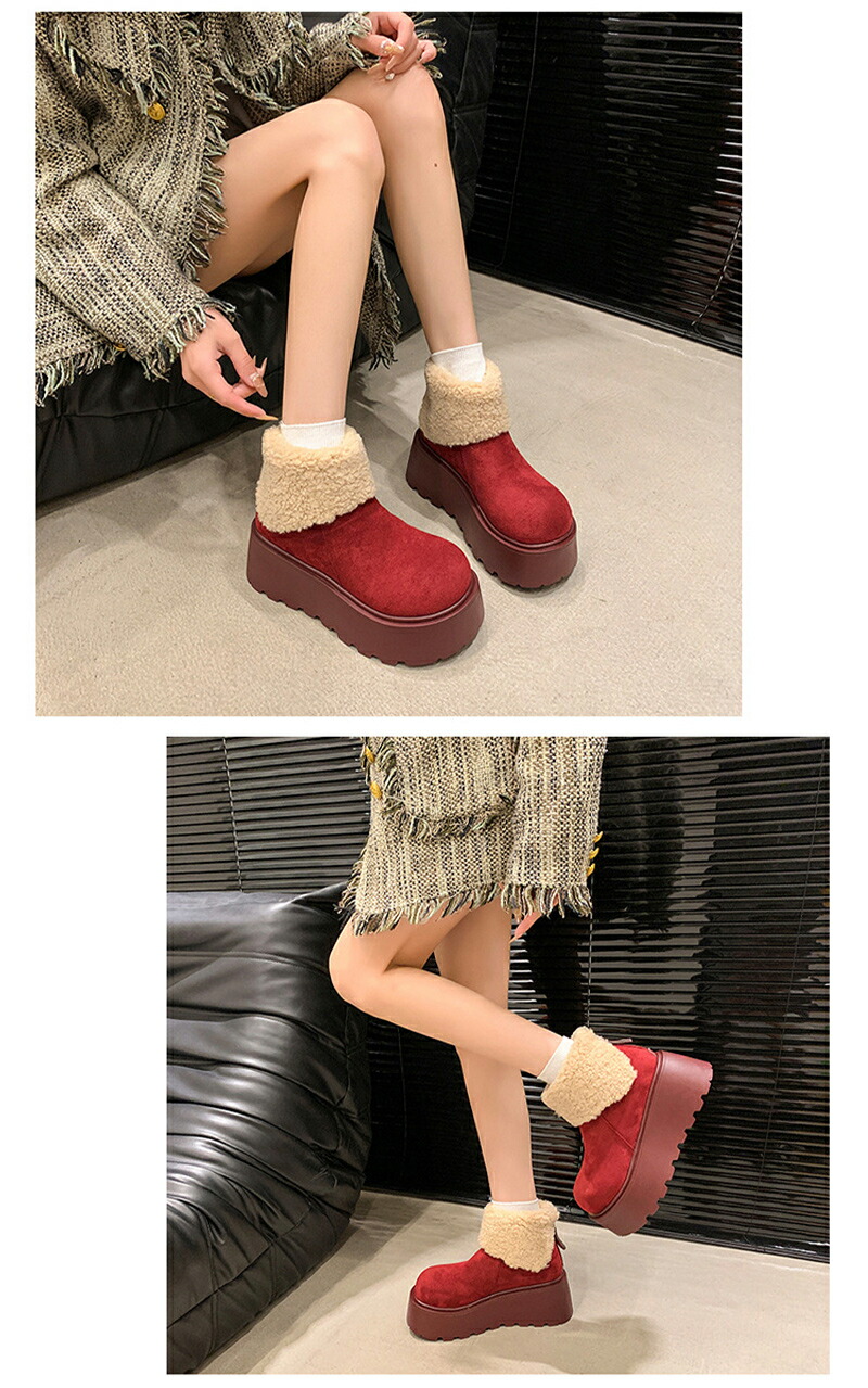 ショートブーツ 厚底7cm スエード 靴 早い者勝ち ブラウン カーキ レッド 22.5 23.0 23.5 24.0 24.5 25.0