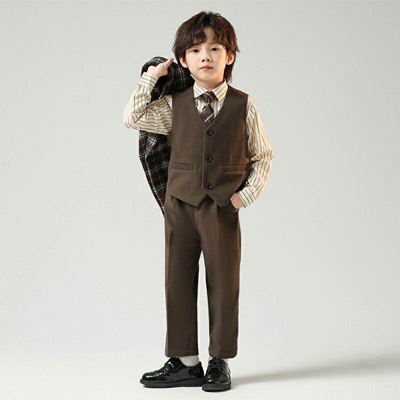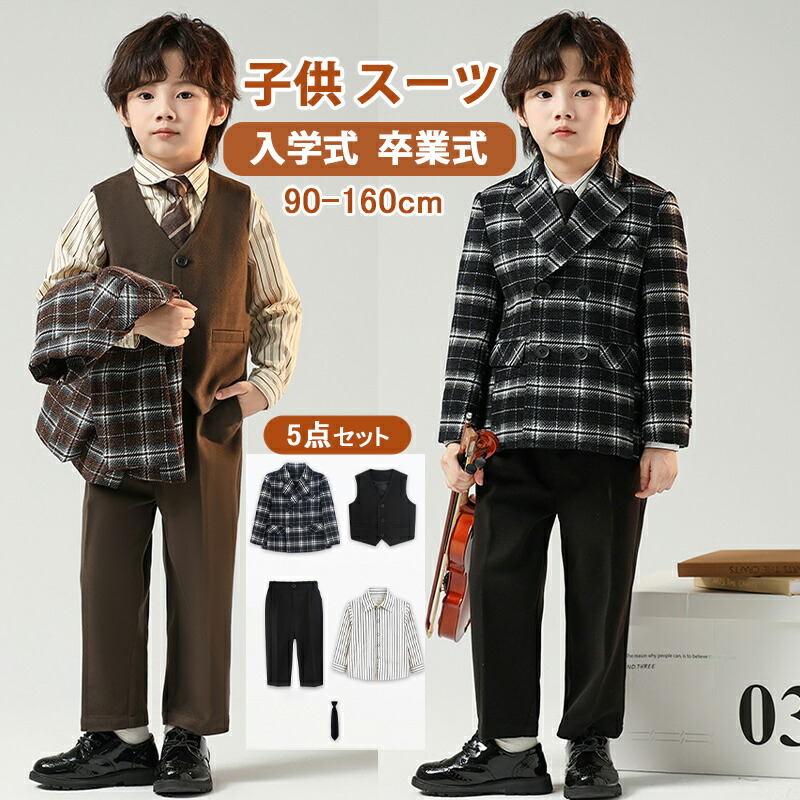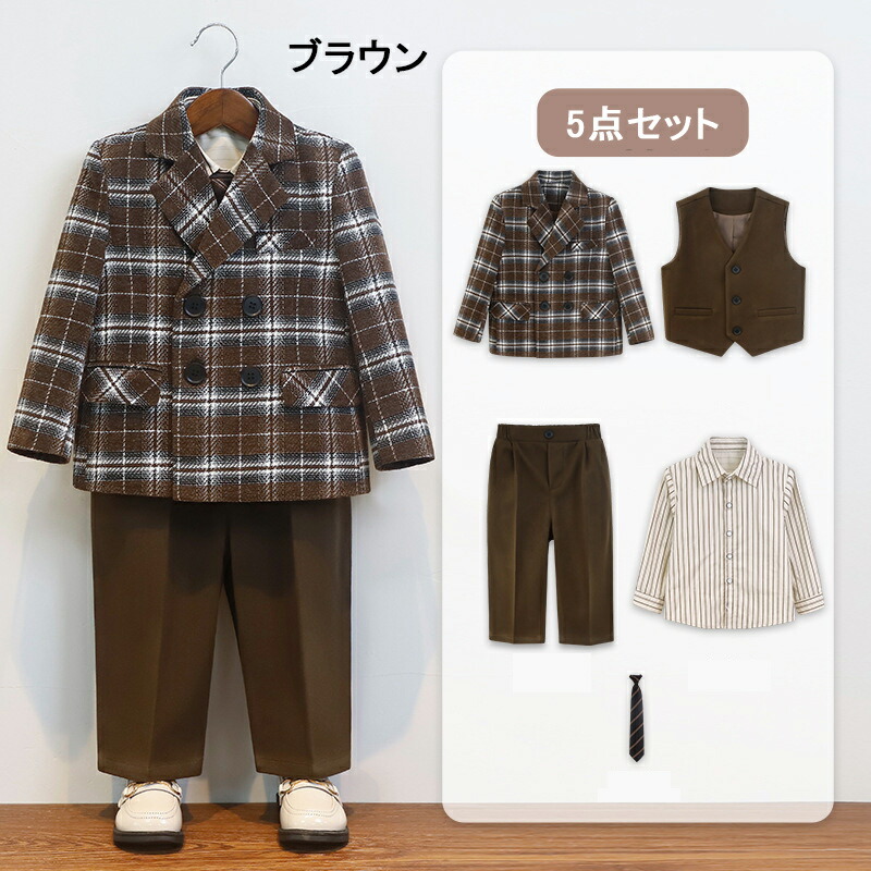 スーツ 子供 フォーマル 男の子 キッ キッズ ベビー マタニティ 豊富 ブラウン ブラック シャツ+ズボン+ベスト+タイ 5点セット ブレザー+ズボン+ベスト+タイ ズボン+ベスト+タイ