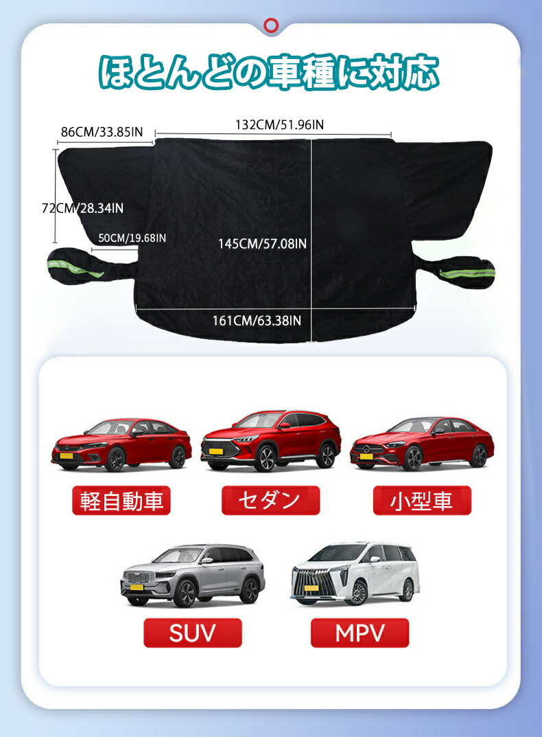 車用凍結防止カバー フロントガラスカバー 凍結防止 積雪対策 カーカバー 自動車カバー 車 ボディーカバー 車体カバー 軽い自動車カバー 防水 防風 雪対策 黄砂対策 汎用タイプ 汎用サ 紫外線カット