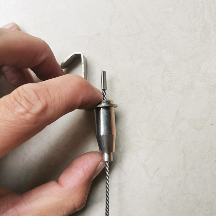 ◆ループ状になったワイヤーの先端をレールのランナーに引っかけて設置します!