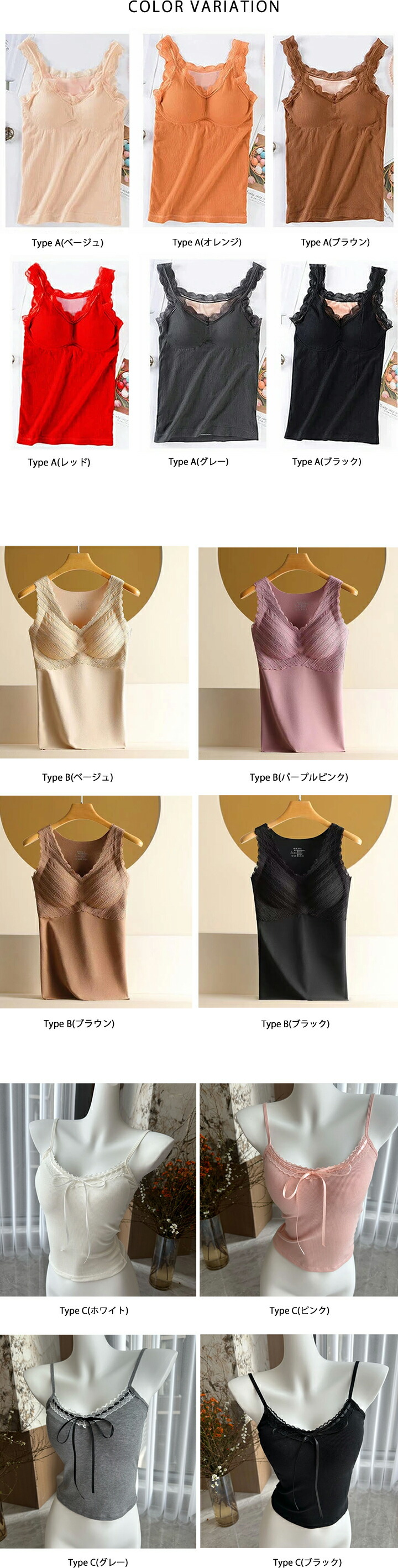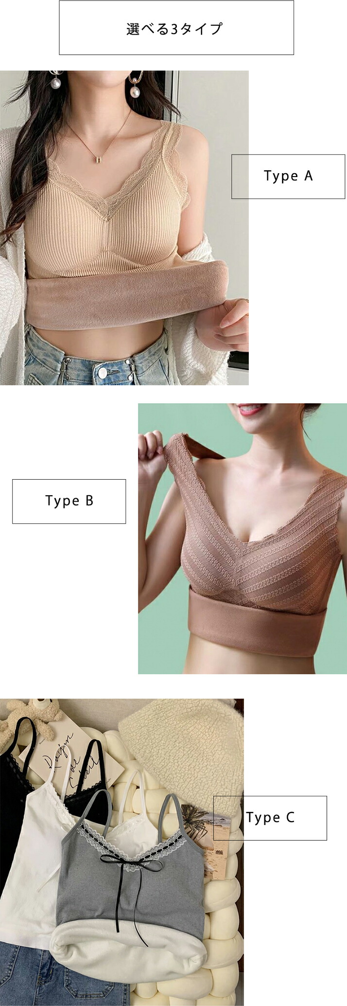 2A18 あったか裏起毛キャミソール レディース インナー 下着 インナーキャミソール 早い者勝ち Type A Type B Type C 通常サイズ(S~M) 大きいサイズ(L~XL)