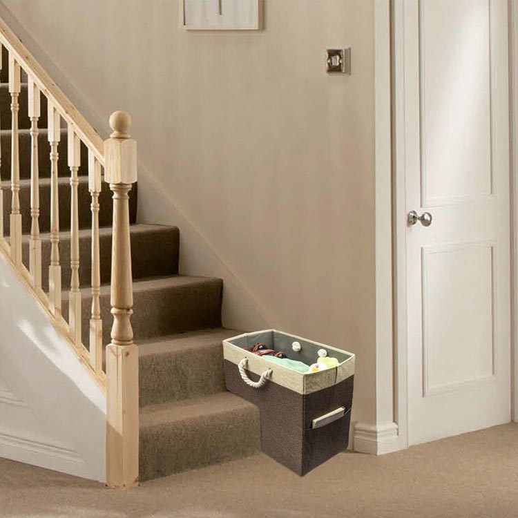 収納ボックス ハンドル付き階段バスケッ グレー ブラウン