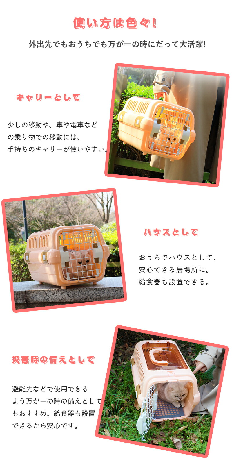 ペットキャリー 犬 猫 キャリーケース ペット ペットグッズ 通販 ホワイト ブルー オレンジ S L