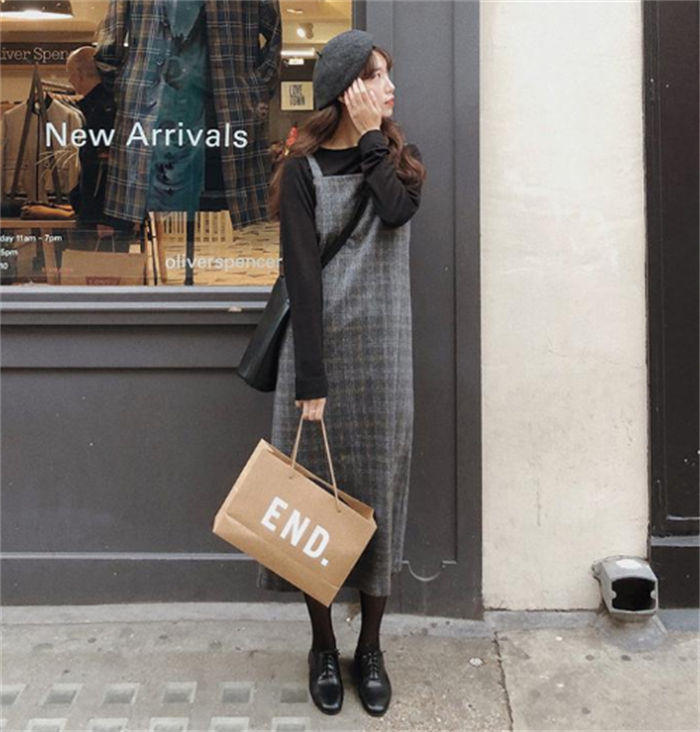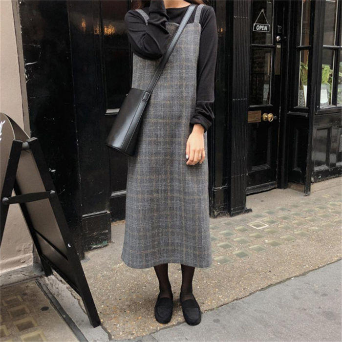 ジャンパースカート 秋 冬 ロング キ グレー コーヒー色 S M L XL