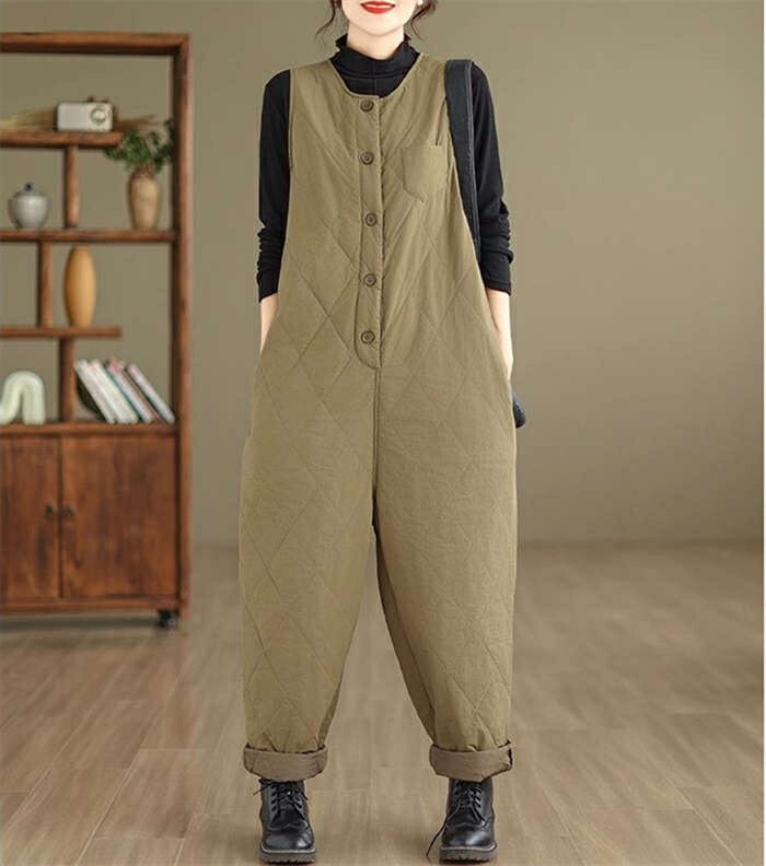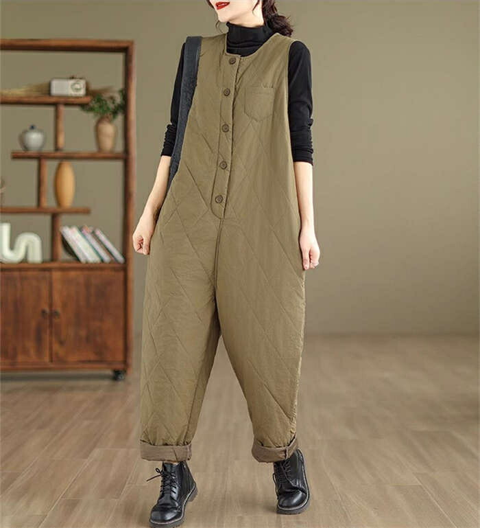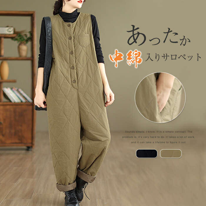 中綿入りサロペット防寒 つなぎ レディ オールインワン サロペット 続々入荷中 ブラック カーキ XL 2XL