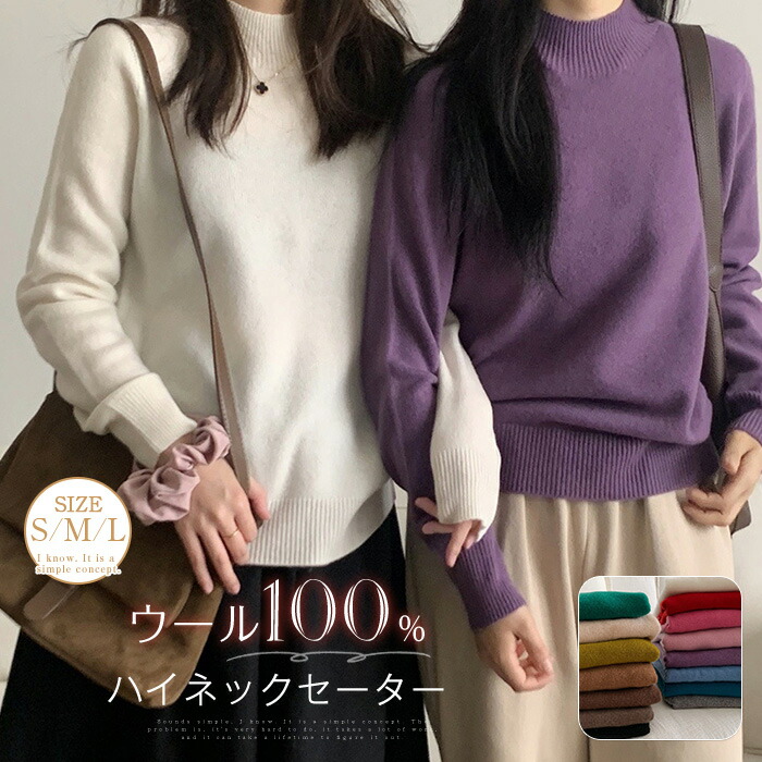 ウール100% セーター ニット ハイ レディースファッション 豊富な品揃え ダークグリーン ベージュ カーキ モーカ コーヒー キャメル ブラック ホワイト レッド ピンク パープル1 パープル2 ブルー グレー S M L