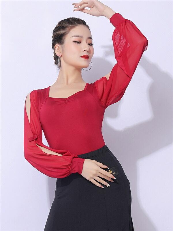 社交ダンス衣装 女性 上着 トップス 体操 ダンス 社交ダンス ウェア 人気 M L XL 2XL 3XL ブラック レッド