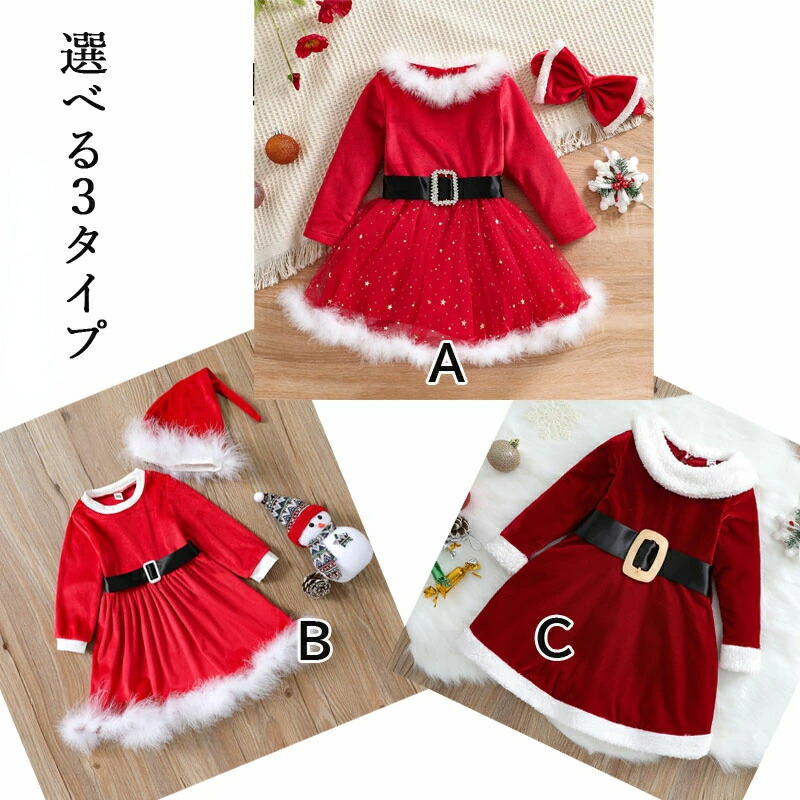 サンタ 子供 クリスマス ワンピース A B C 90cm 100cm 110cm 120cm 130cm