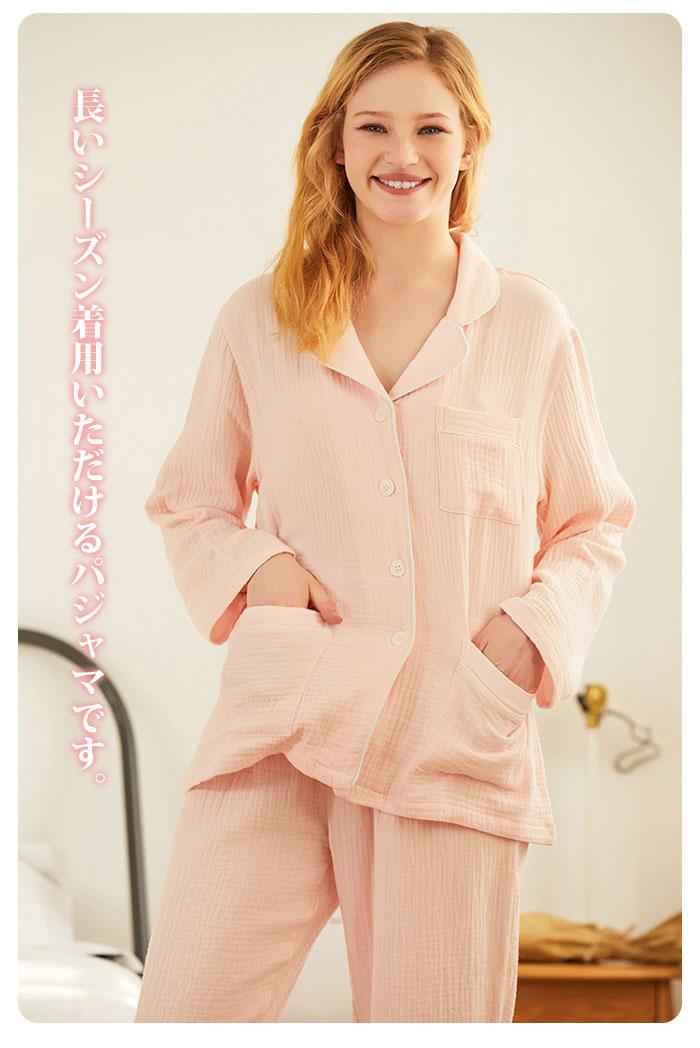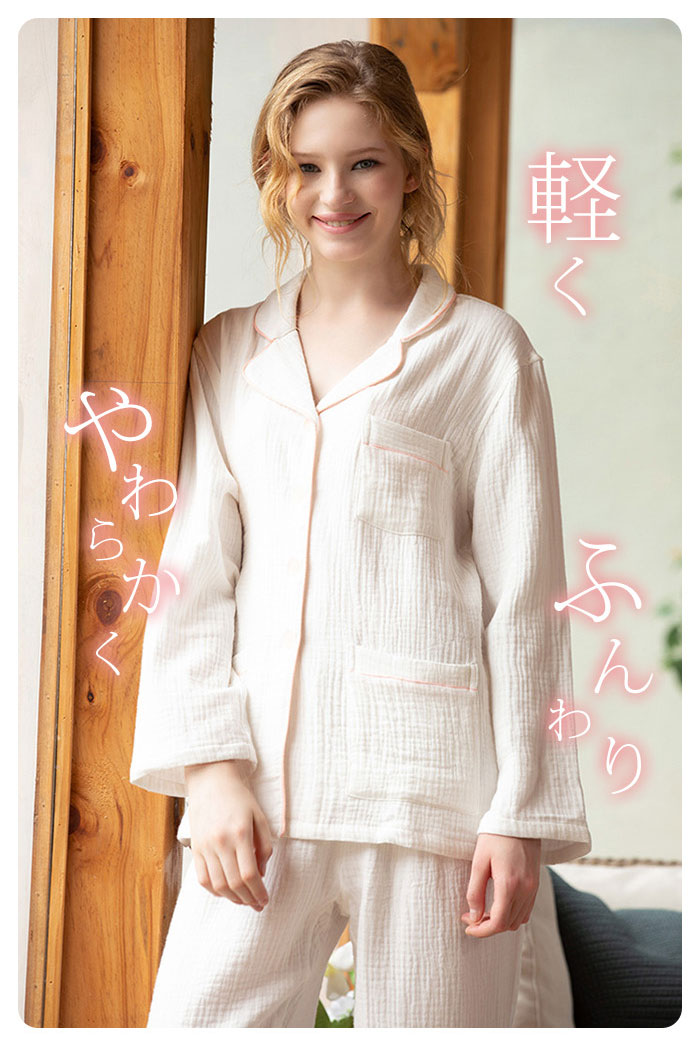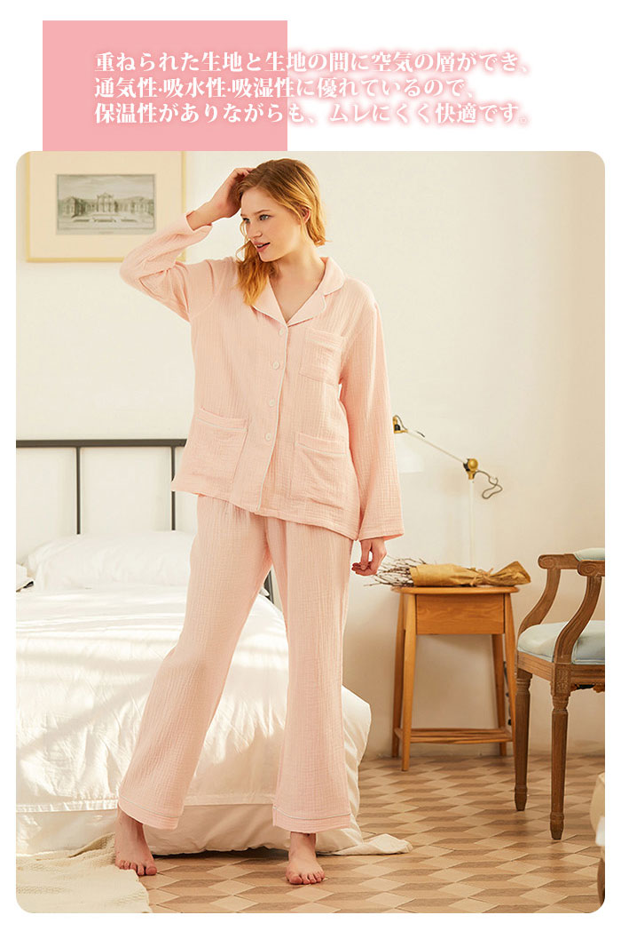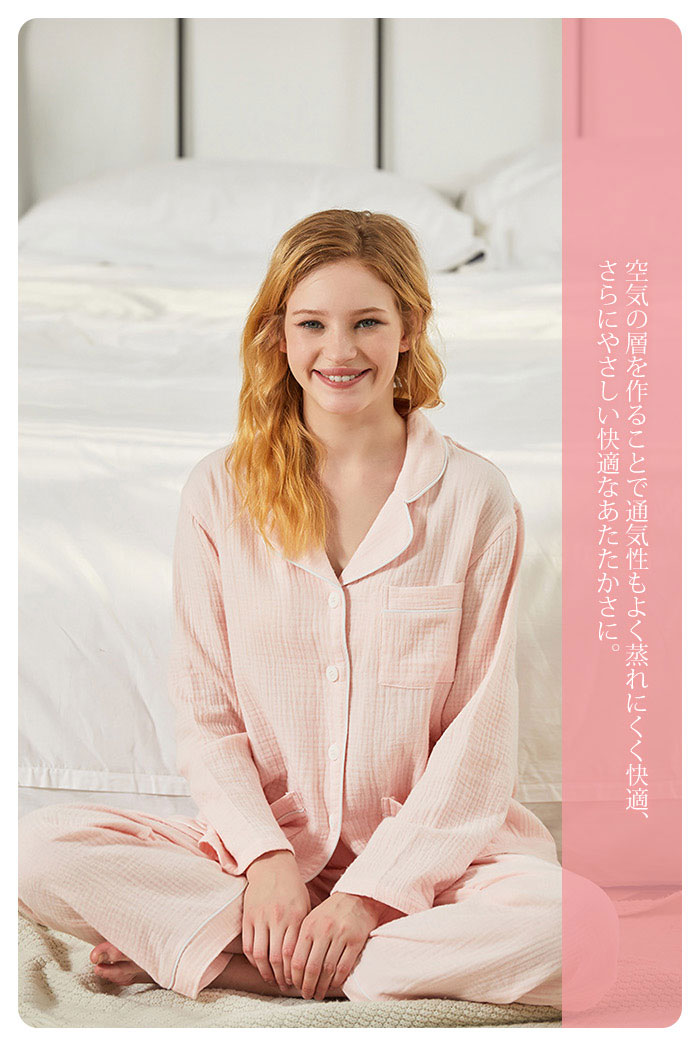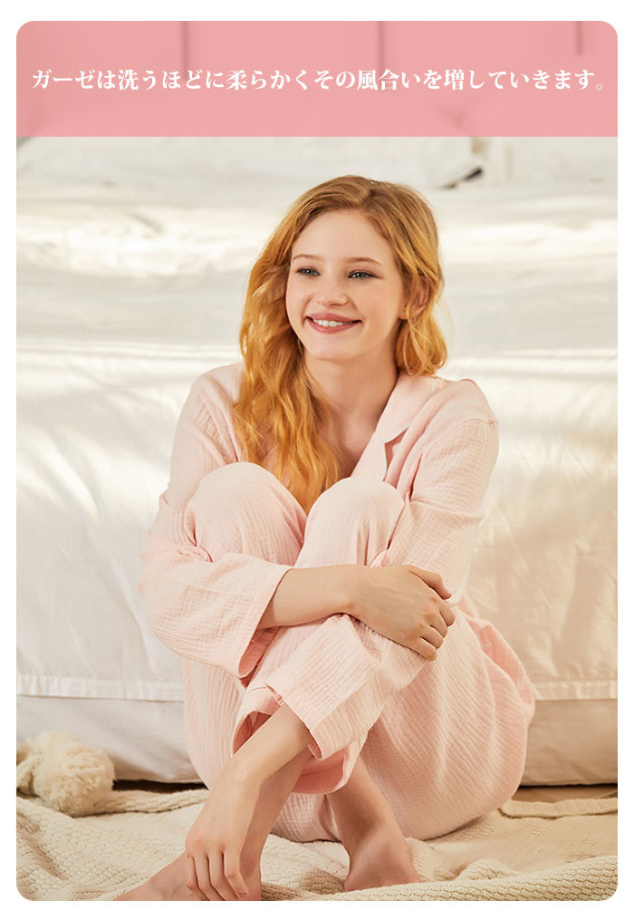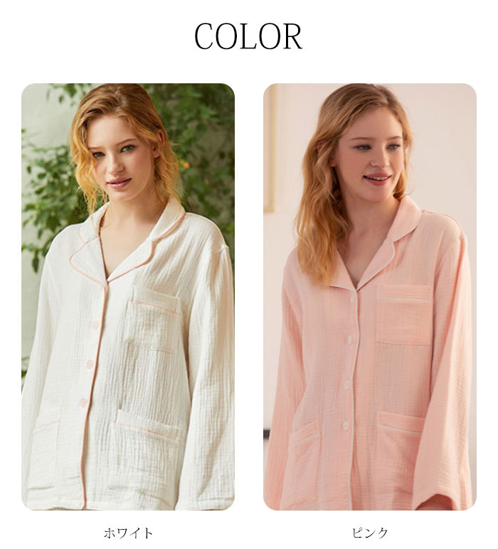ガーゼ パジャマ レディース ルームウ インナー 下着 ナイトウエア 特集 ピンク ホワイト S M L