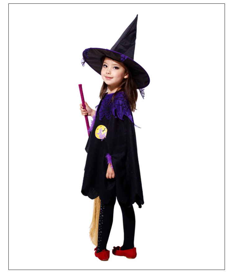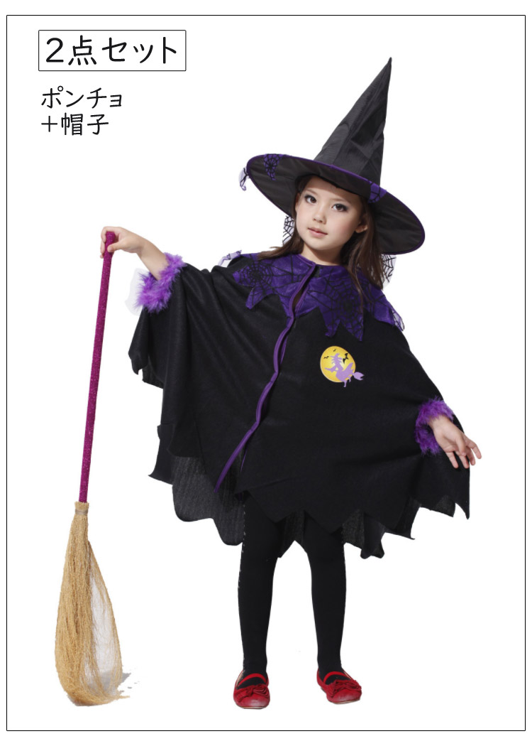 ハロウィン コスプレ 子供 衣装 仮装 オシャレ コスチューム 女の子 演出 魔女 キッズ クイーン コスプレ衣装 かわいい 黒 セット ケープ風 悪魔衣装 変装 ポンチョ+帽子