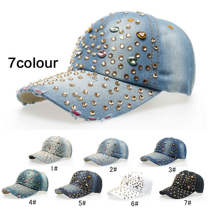 7カラースタッズ付き キラキラ 帽子 スナップ キャップ ストーン ビジュー ゴールド スタッズ デニム ヒップホップ ストリート ダンス ファッション 踊り 体育祭 文化祭 HIPHOP 衣装