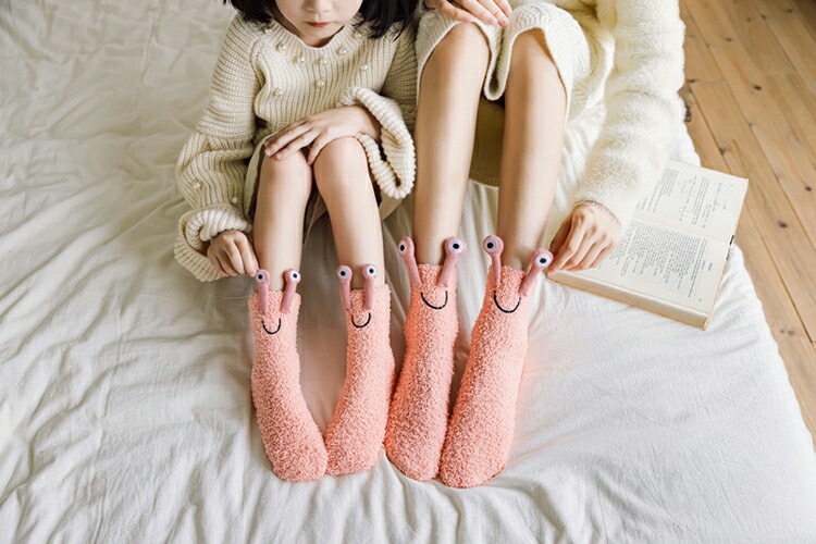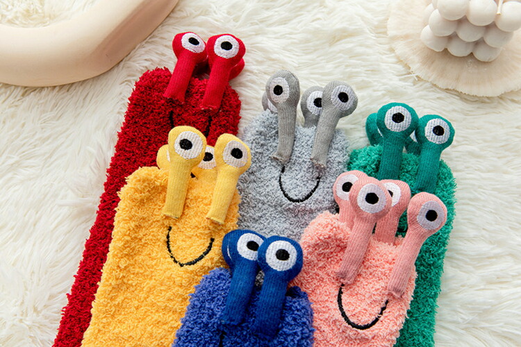 あったか靴下 親子サイズ ルームソックス 保温 もこもこ 防寒 秋冬 全6色 モンスター かたつむり エイリアン キャラクター 目玉 ソックス レディース 大人 子供 ジュニア 靴下 ふわふわ キッズ