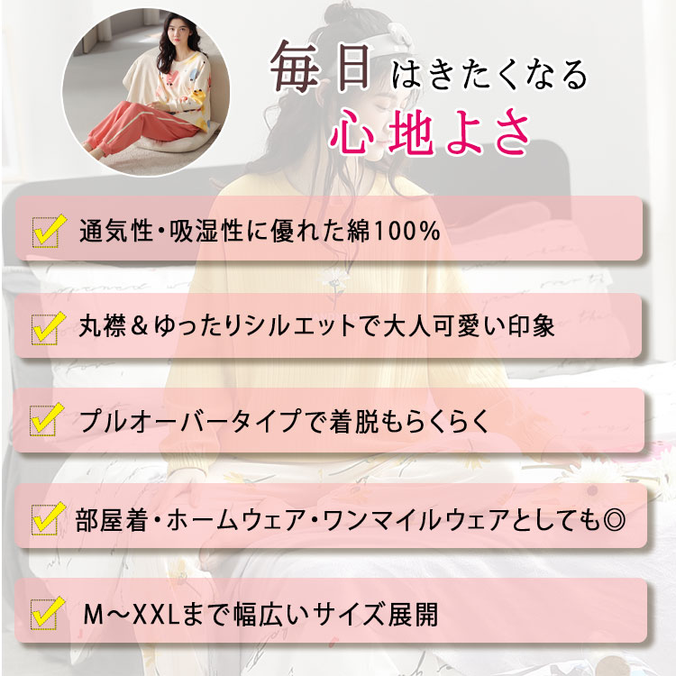パジャマ レディース 綿100% 長袖 レディース ナイトウェア ルームウェア ルームウェア 上下セット 通販 NO1 NO2 NO3 NO4 NO5 NO6 M L XL XXL