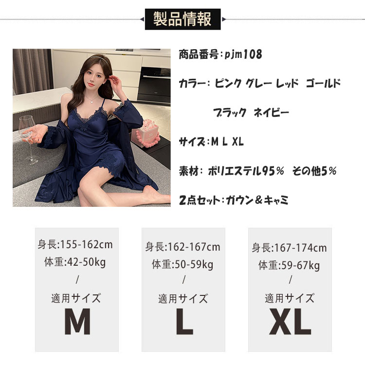 ナイトウエア 2点セット セクシー ガ インナー 下着 ナイトウエア 新作 ピンク グレー レッド ゴールド ブラック ネイビー M L XL