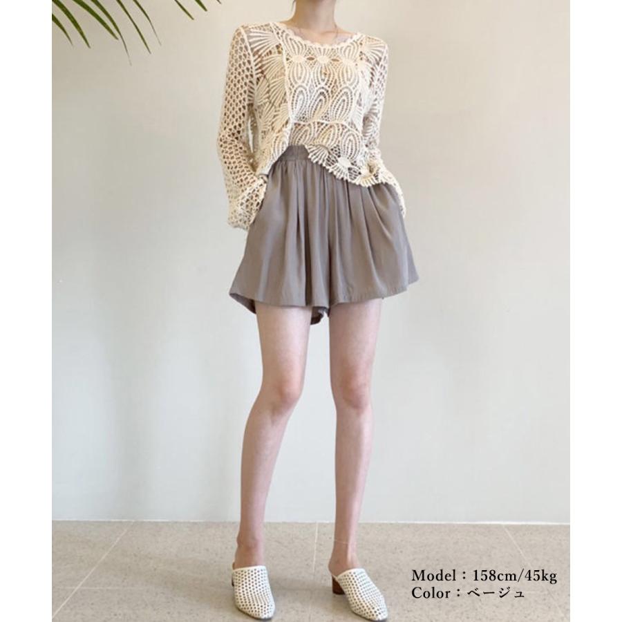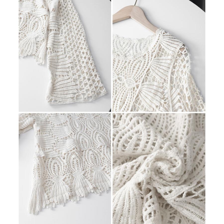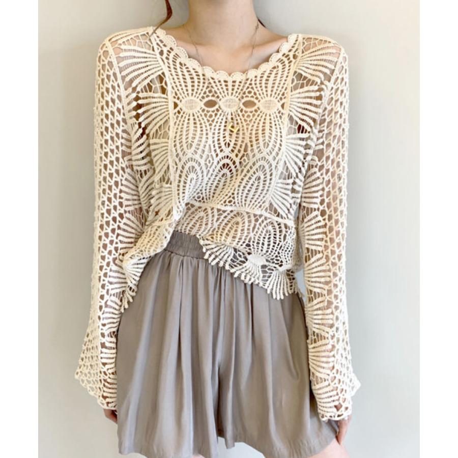 かぎ編みサマーニット 透かし編みトップ レディースファッション 新登場! ベージュ ホワイト