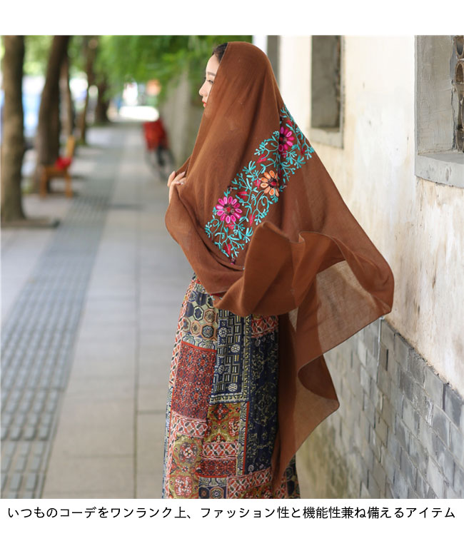 ストール 刺繍 大判 マフラー 秋新作 バッグ 小物 ブランド雑貨 通販 ロイヤルブルー ネイビー レッド ブラック イエロー フルーツグリーン ダークオレンジ ブラウン ダークピンク オフホワイト ライトピンク エメラルドグリーン ダークグリーン ブルー スイカレッド ライトオレンジ ワインレッド バラ色 ホワイト グレー