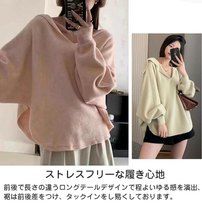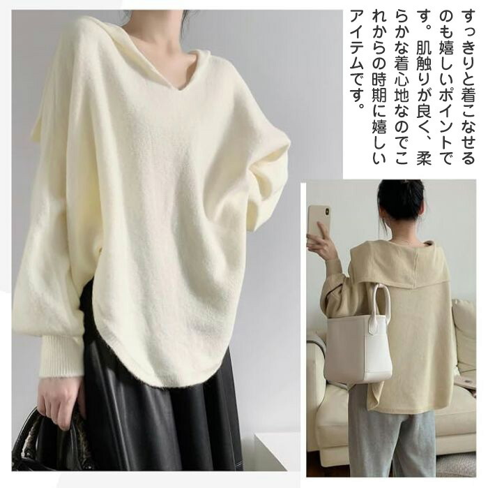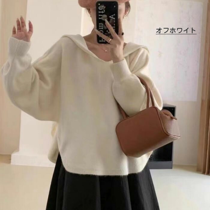 パーカー レディース ニット セーラー トップス ニット セーター ニットパーカー 超目玉商品 オフホワイト アプリコット ブルー ピンク イエロー ブラウン ブラック