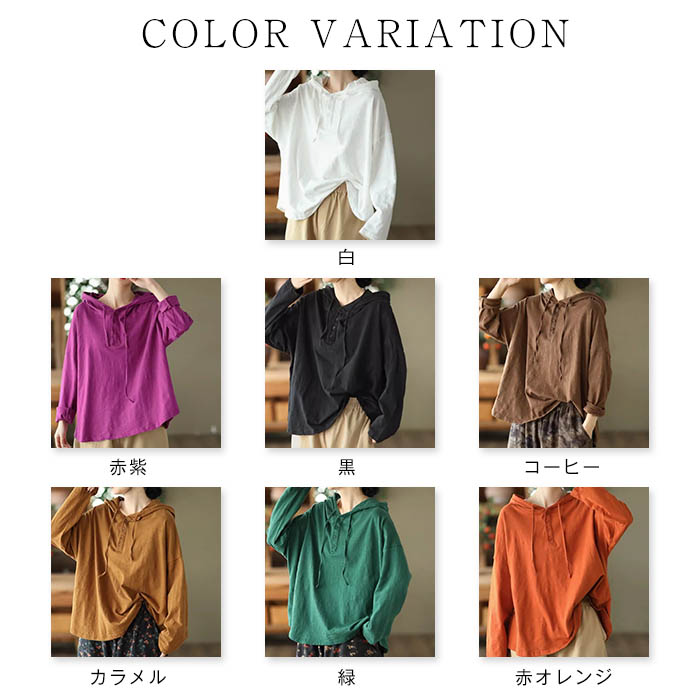 パーカー レディース 長袖 tシャツ レディースファッション 新作 白 黒 緑 赤紫 コーヒー カラメル 赤オレンジ L XL