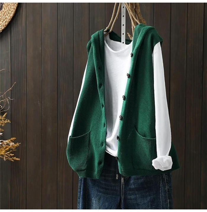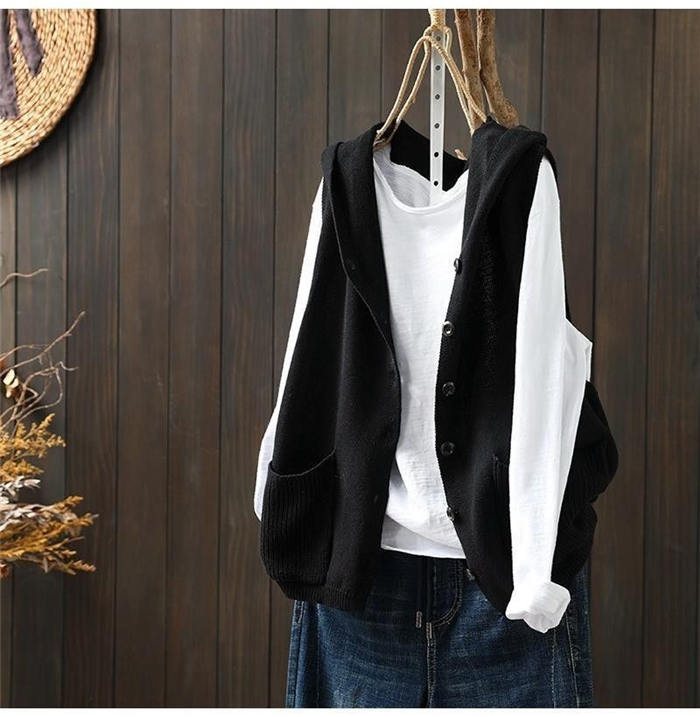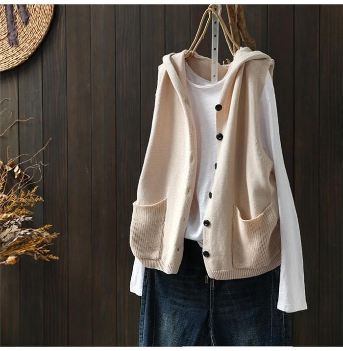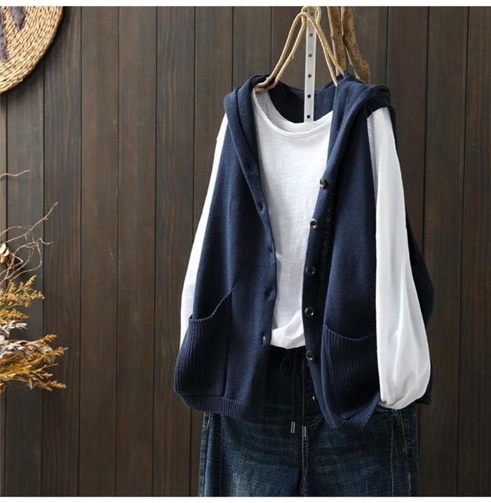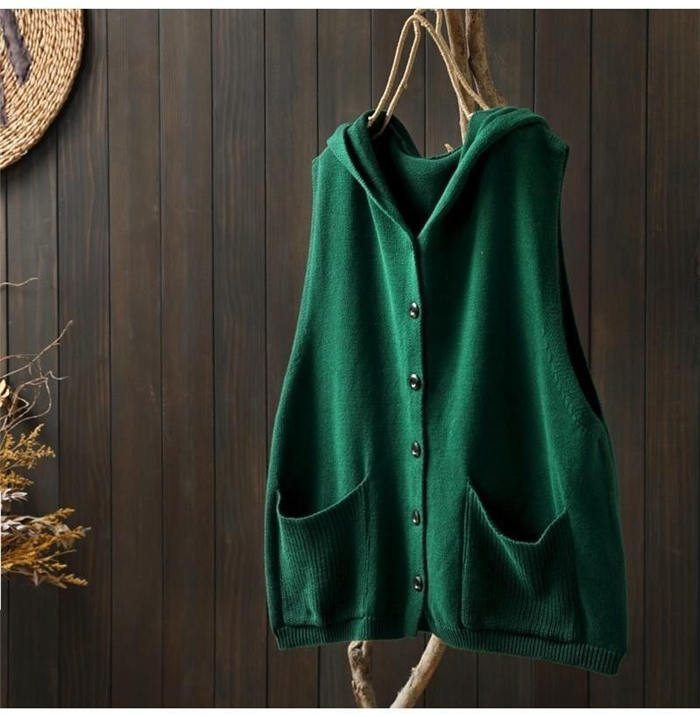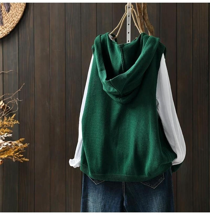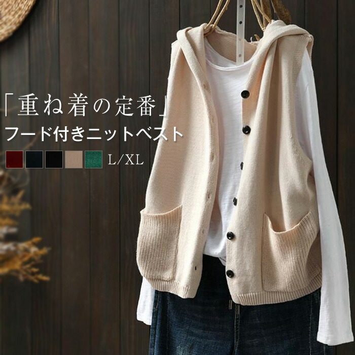 フード付き ニット ベスト レディース トップス ベスト 豊富な品揃え 黒 ベージュ 紺色 赤 緑 L XL