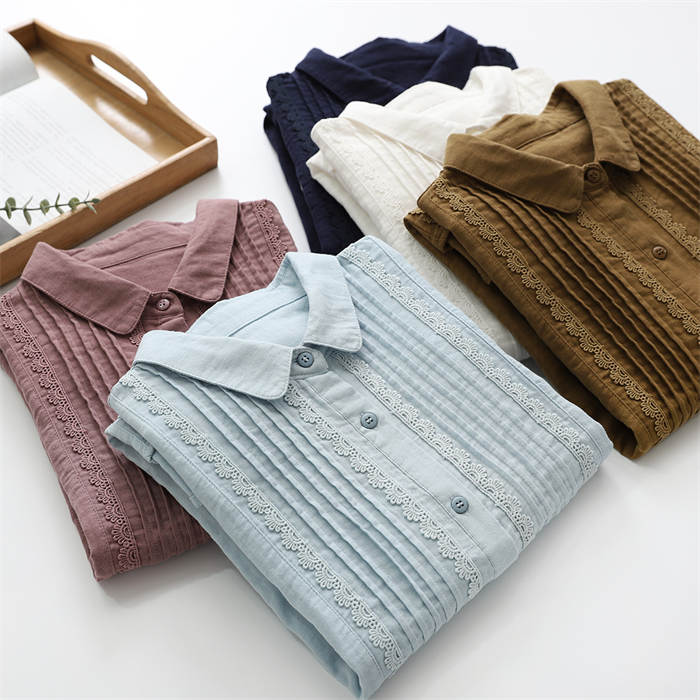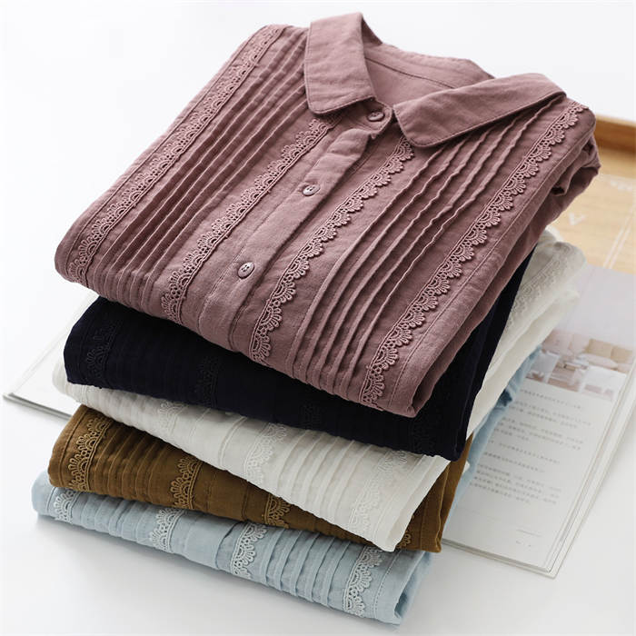 異素材 ガーゼ シャツ レディース 長 トップス シャツ ブラウス 続々登場 ホワイト パープル 紺色 ブルー ブラウン