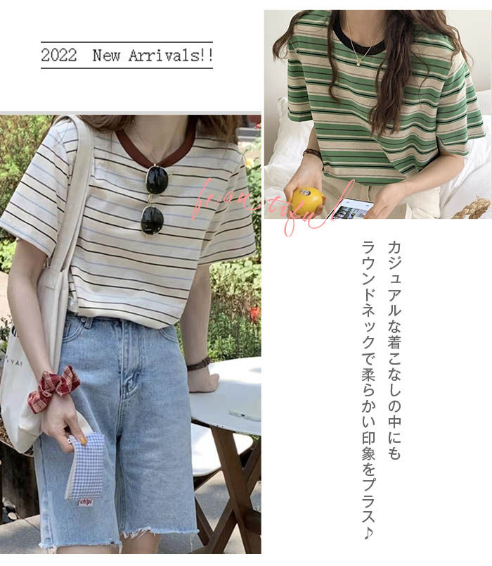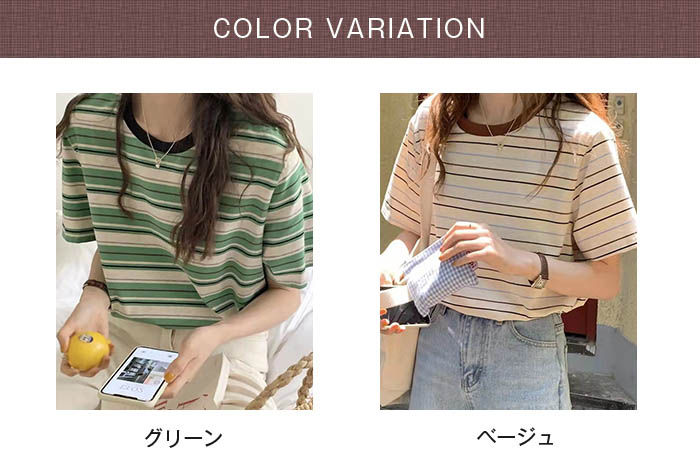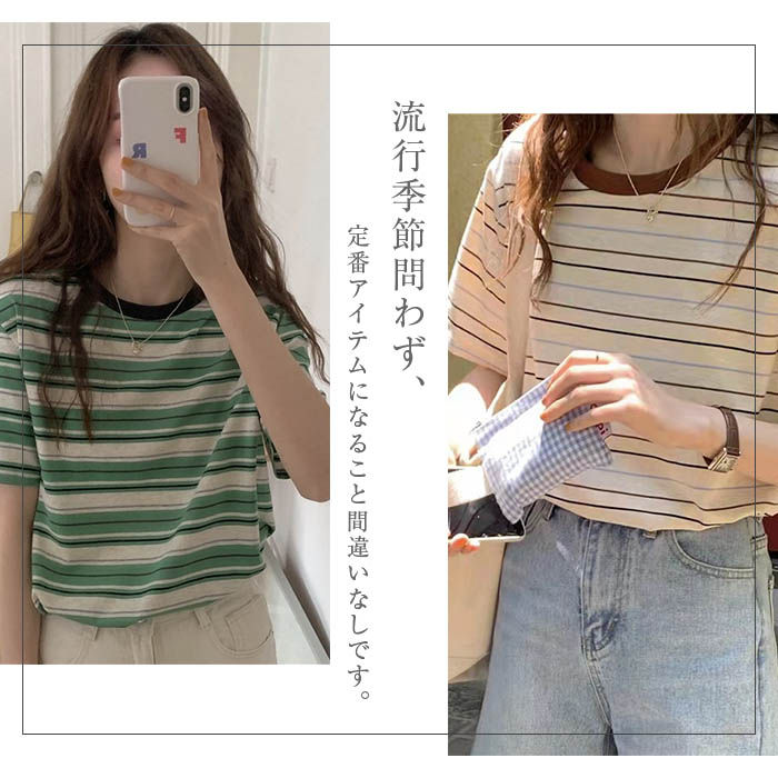 ボーダー tシャツ レディース 半袖 レディースファッション 特集 グリーン ベージュ M L XL