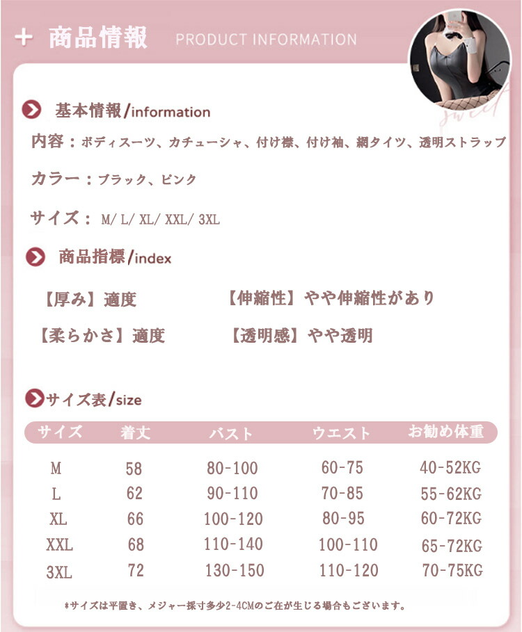 コスプレ バニーガール 衣装 ハロウィ コスプレ 変装 仮装 コスチューム一式 新登場! ブラック ピンク M L XL XXL 3XL