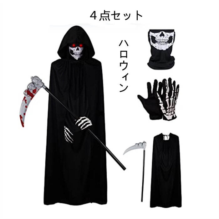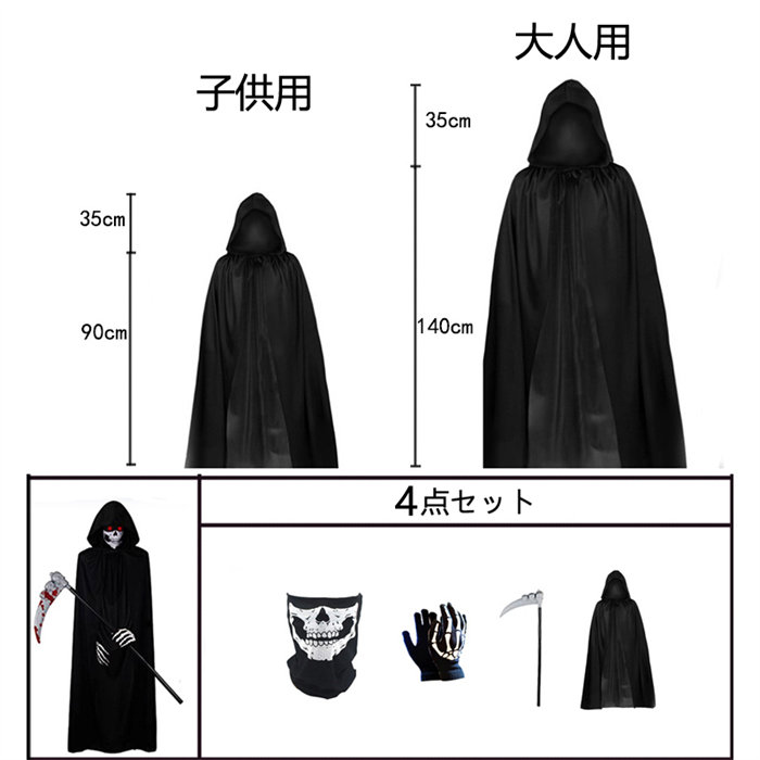 死神 4点セット コスプレ マント コ コスプレ 変装 仮装 全身タイツ 早い者勝ち 子供用 大人用