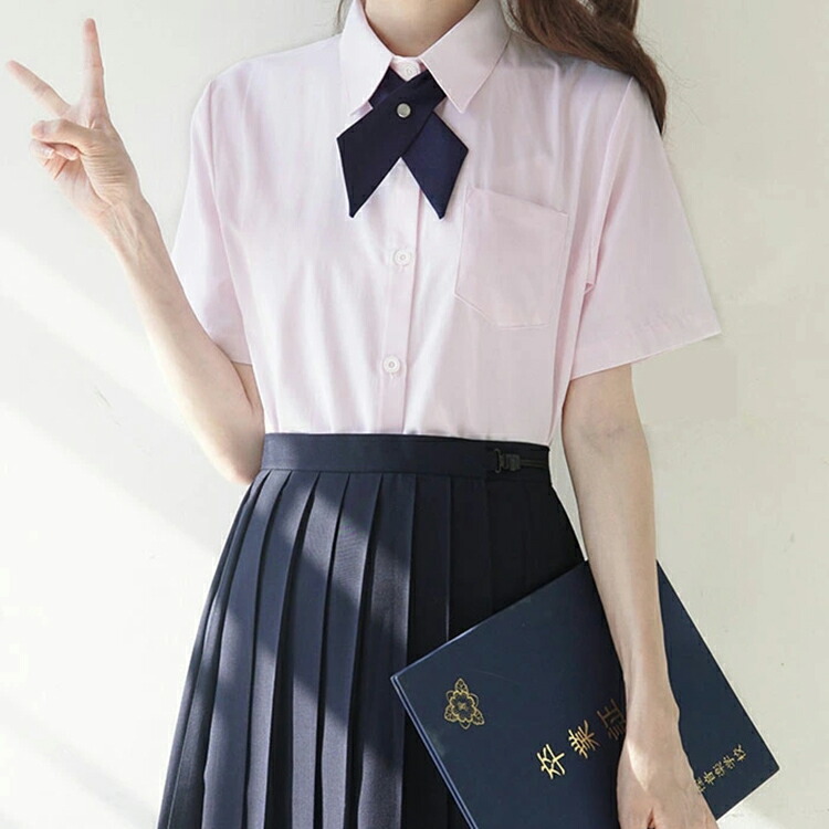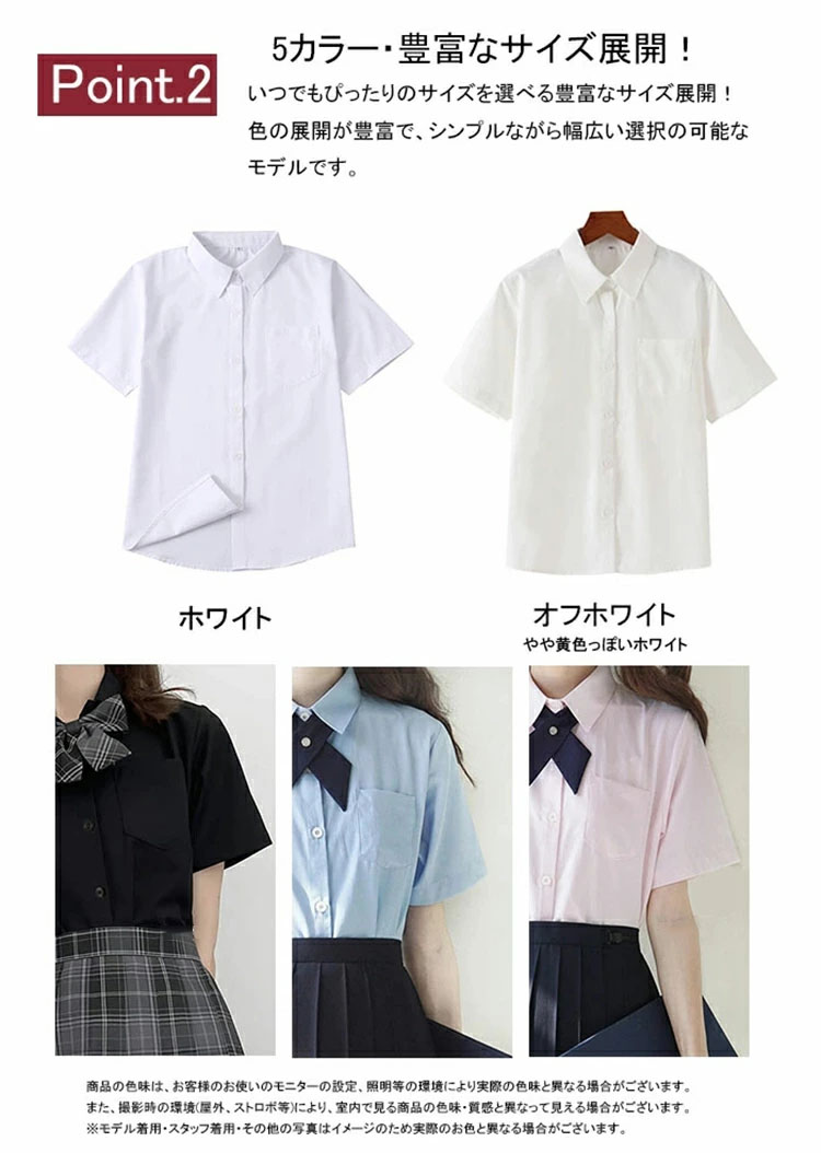 スクールシャツ 半袖 女子 大きいサイ ホワイト ブラック オフホワイト ブルー ピンク XS S M L XL 2XL 3XL 4XL 5XL